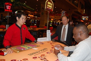 - अन्यथा, यदि खिलाड़ी का दो-कार्ड वाला हाथ डीलर के दो-कार्ड वाले हाथ को हरा देता है और उसका तीन-कार्ड वाला हाथ डीलर के तीन-कार्ड वाले हाथ को हरा देता है, तो खिलाड़ी जीत जाता है और उसे उसके मुख्य दांव पर समान धनराशि का भुगतान किया जाता है।
