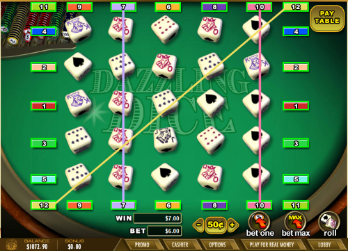 डैज़लिंग डाइस एक मौका का खेल है जो वेगर गेमिंग टेक्नोलॉजी सॉफ्टवेयर का उपयोग करके इंटरनेट कैसीनो में उपलब्ध है। यह खेल पाँच गुणा पाँच के मैट्रिक्स में व्यवस्थित 25 पोकर पासों को घुमाने और 12 भुगतान रेखाओं पर भुगतान करने वाले पोकर हाथ बनाने पर आधारित है।