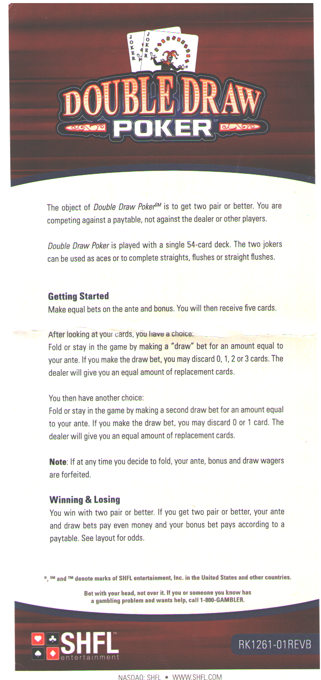 मेरे फोरम विज़ार्ड ऑफ़ वेगास पर इस खेल के बारे में दो सूत्र हैं:- डबल ड्रॉ पोकर (3 मई 2014 को शुरू हुआ)