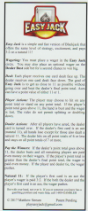 ईज़ी जैक को मोटे तौर पर ब्लैकजैक का एक प्रकार कहा जा सकता है जहाँ लक्ष्य डीलर की तुलना में 11 के करीब पहुँचना होता है, बिना उससे आगे बढ़े। इसे मैथ्यू स्ट्रीम ने बनाया था और 21 जून, 2017 को लास वेगास के हैराह में इसका फील्ड ट्रायल हुआ था। मैंने इसे 30 जून, 2017 को वहीं देखा और खेला था।