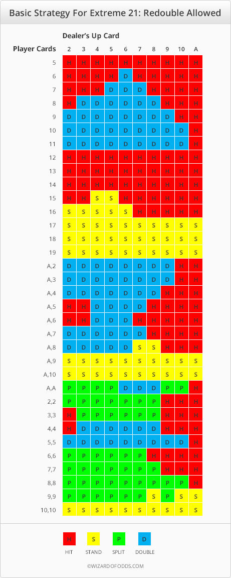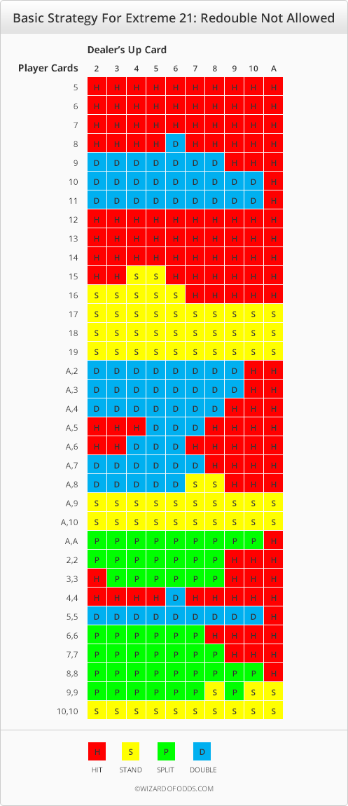 अगली तालिका एक्सट्रीम 21 के लिए बुनियादी रणनीति दिखाती है यदि रिड्युबलिंग की अनुमति नहीं है।