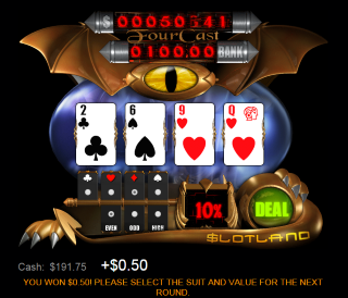 - यदि खिलाड़ी 20 डॉलर का दांव लगाता है और सभी चार भविष्यवाणियां सही हो जाती हैं तथा सभी चार सूट सही पाए जाते हैं, तो खिलाड़ी प्रगतिशील जैकपॉट जीत जाएगा।