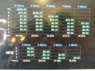 निम्नलिखित तालिका में आधार गेम के लिए रिटर्न तालिका दर्शाई गई है, जिसमें गुणकों और बोनस पर विचार करने से पहले नौ नंबर चुने गए हैं और $2 का दांव लगाया गया है।