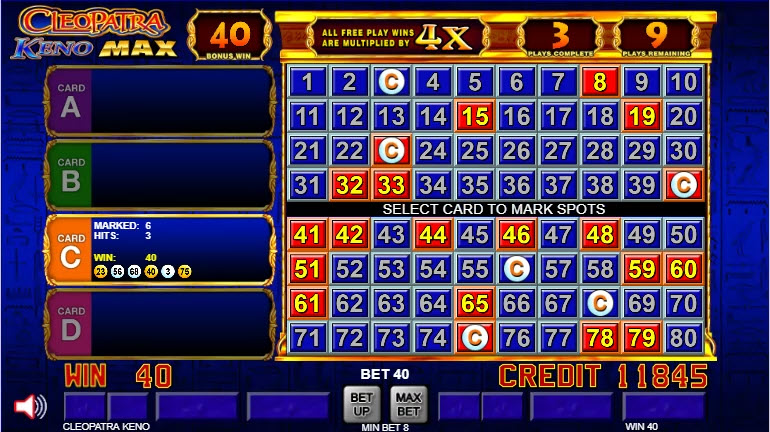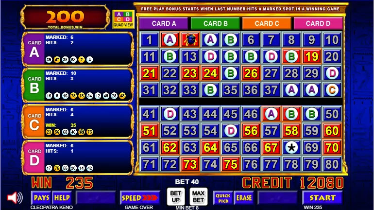 VideoPoker.com पर क्लियोपेट्रा केनो मैक्स खेलें। इस गेम के लिए गोल्ड लेवल की सदस्यता आवश्यक है।