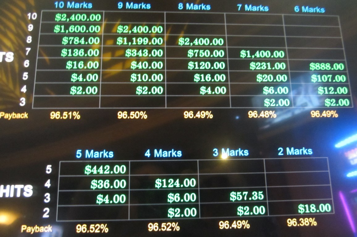 निम्नलिखित तालिकाएं $2 के दांव के लिए भुगतान तालिका पर आधारित हैं।