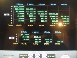 अगली तालिका अतिरिक्त ड्रॉ सुविधा में कैच द्वारा हिट की प्रत्येक संख्या के लिए अपेक्षित रिटर्न दर्शाती है। निचली पंक्ति प्रत्येक पिक की संख्या के लिए कुल अपेक्षित रिटर्न दर्शाती है।