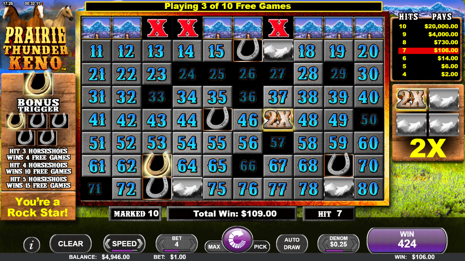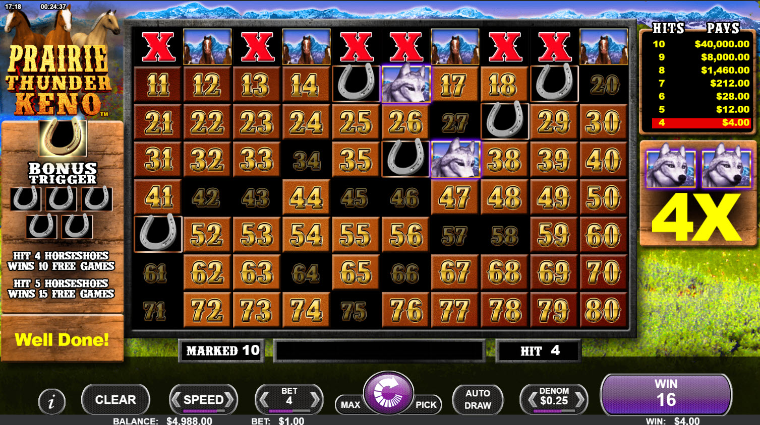 प्रेयरी थंडर केनो एक ऐसा केनो संस्करण है जो मल्टीप्लायर और मुफ़्त स्पिन के साथ-साथ और भी बड़े मल्टीप्लायर भी प्रदान करता है। इसे ग्रैंड विज़न गेमिंग द्वारा बनाया गया है। मैंने पहली बार इस गेम को ड्राफ्टकिंग्स कैसीनो में देखा था।