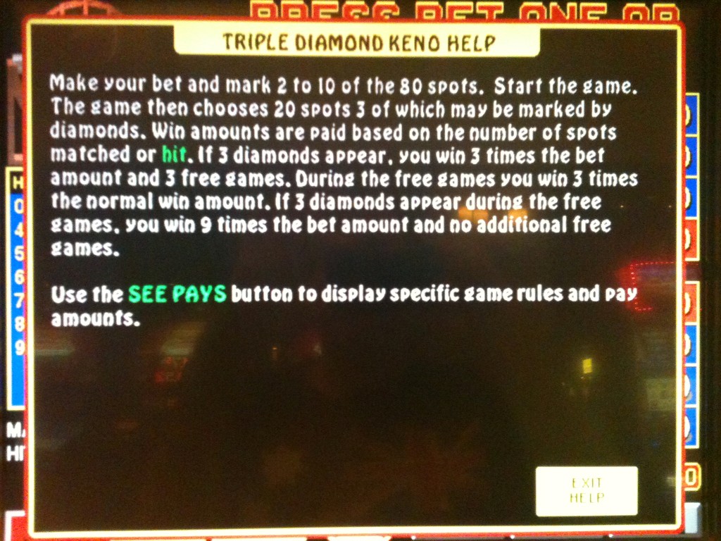 ट्रिपल डायमंड केनो — भुगतान तालिका 2