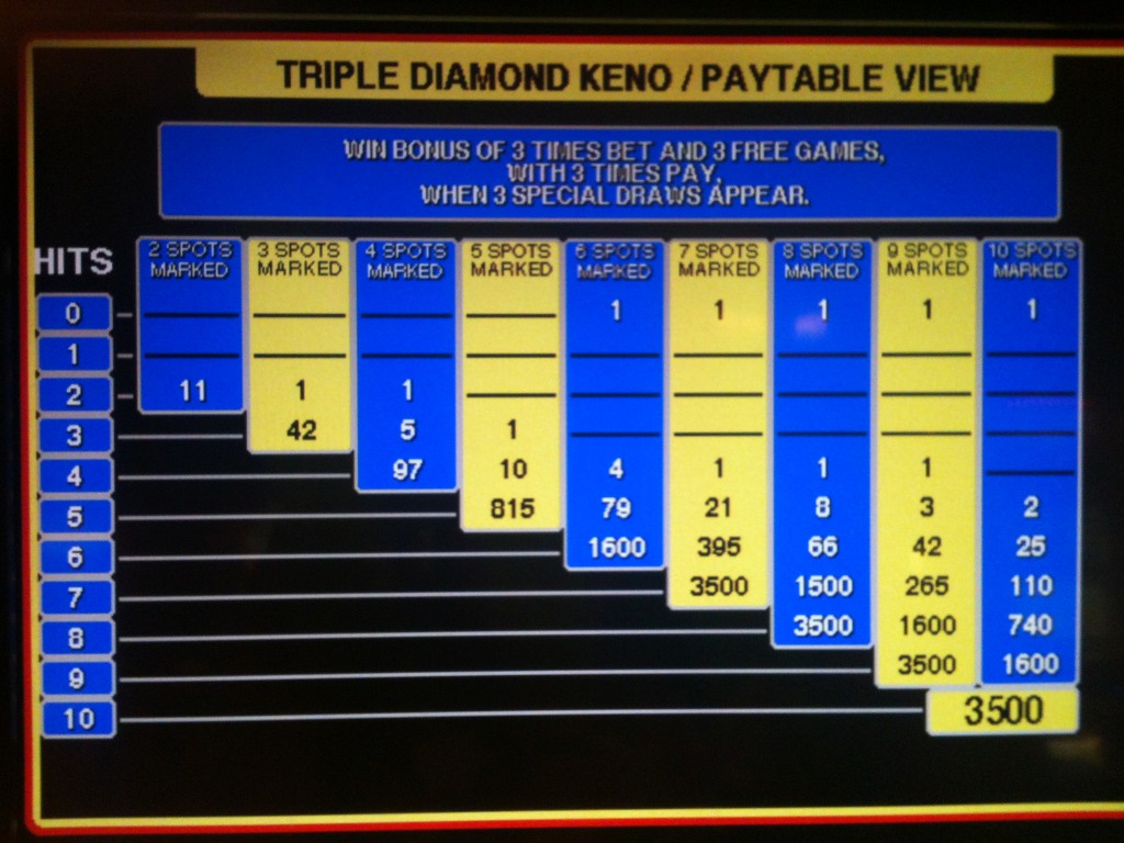 ट्रिपल डायमंड केनो — भुगतान तालिका 1