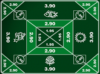 नीचे सट्टेबाजी के लेआउट की एक तस्वीर दी गई है। यह खेल एक प्रतीक वाले दांव पर उदार ऑड्स का पालन करता है और सब कुछ "एक के लिए" के आधार पर व्यक्त करता है।