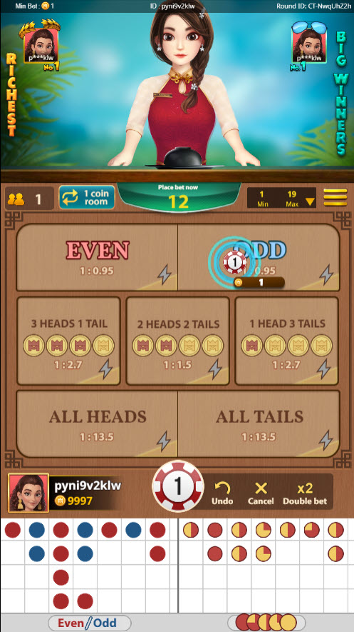 - सट्टा बंद होने के बाद, खेल चार सिक्के उछालेगा और जीतने वाले दांव का भुगतान करेगा।