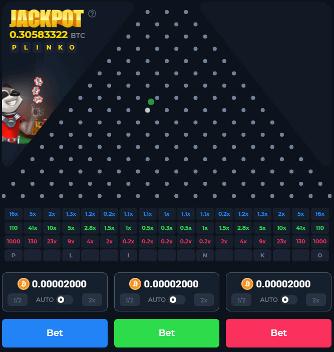 यह पृष्ठ प्लिंको के तीन संस्करण प्रस्तुत करता है जिन्हें मैंने क्रिप्टोगेम्स कैसीनो , बीगेमिंग (सॉफ्टवेयर) और बेटफ्यूरी कैसीनो द्वारा देखा है।