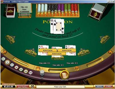 - इक्कों को विभाजित करने के बाद 2-कार्ड 21 को पोंटून के रूप में गिना जाता है।