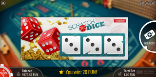 स्क्रैच डाइस सॉफ्टस्विस सॉफ्टवेयर द्वारा प्रस्तुत एक सरल खेल है। इसमें केवल एक ही दांव होता है जो तीन पासों के रोल के आधार पर भुगतान करता है। परिणाम एक स्क्रैच कार्ड की तरह प्रकट होता है।