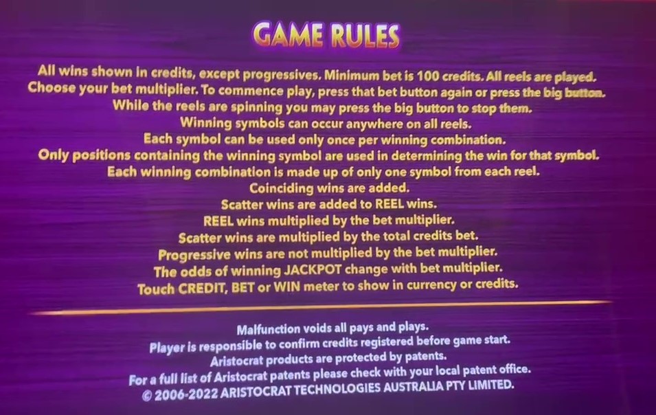 - प्रगतिशील जैकपॉट को छोड़कर, सभी जीतें क्रेडिट के मूल्य के अनुपात में होती हैं।
