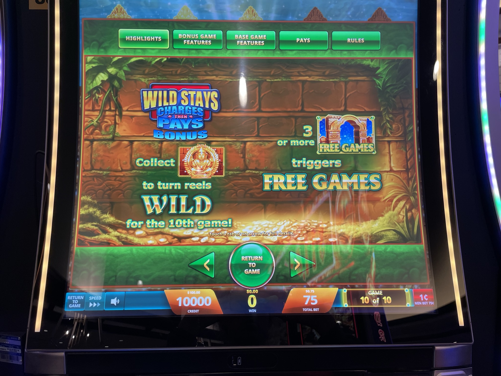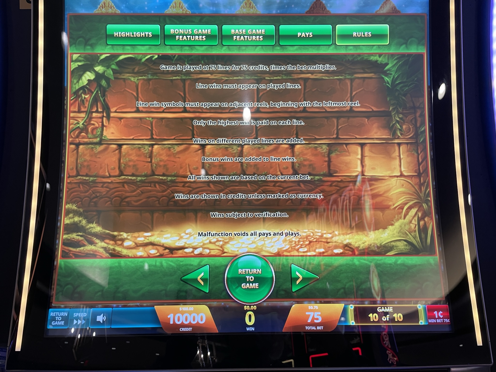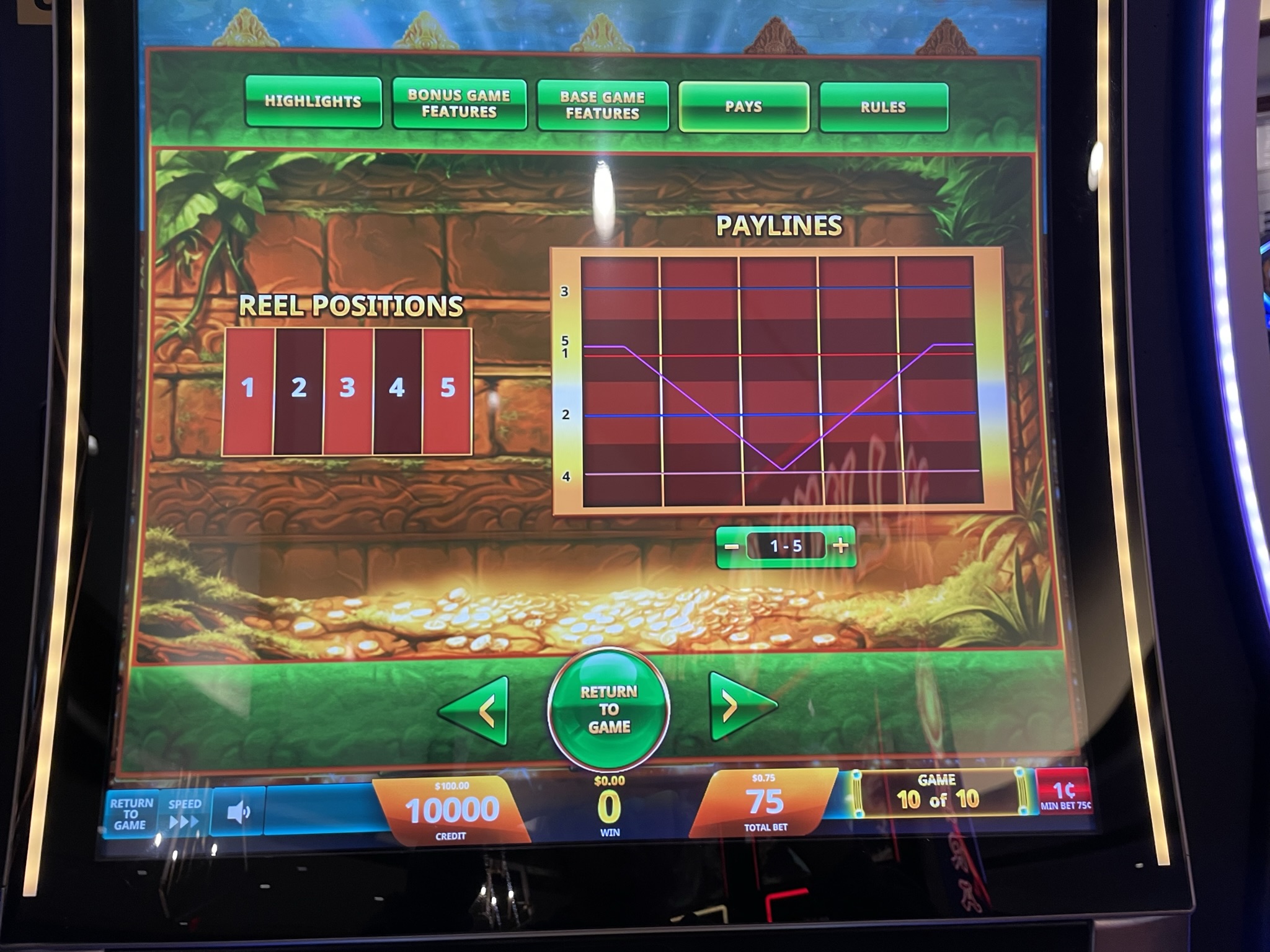 - इस खेल में 75 लाइनें होती हैं। खिलाड़ी हमेशा अपने 75-क्रेडिट दांव के लिए उन सभी पर खेलता है।