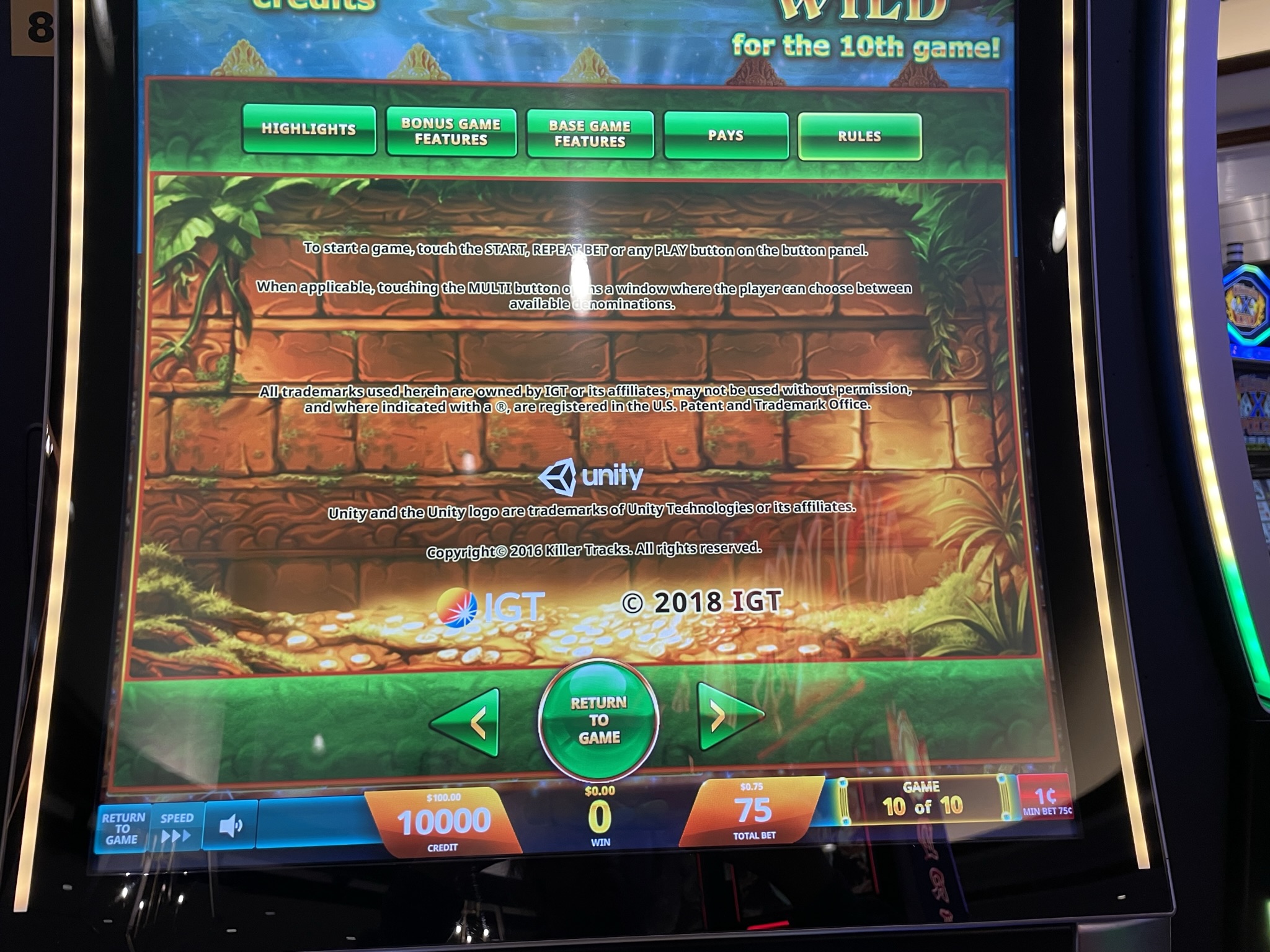 - एक शर्त 75 क्रेडिट की होती है। खिलाड़ी चुन सकता है कि क्रेडिट कितना होगा, लेकिन मेरा मानना है कि 1 सेंट से 5 सेंट तक का दांव लगाना सामान्य है।