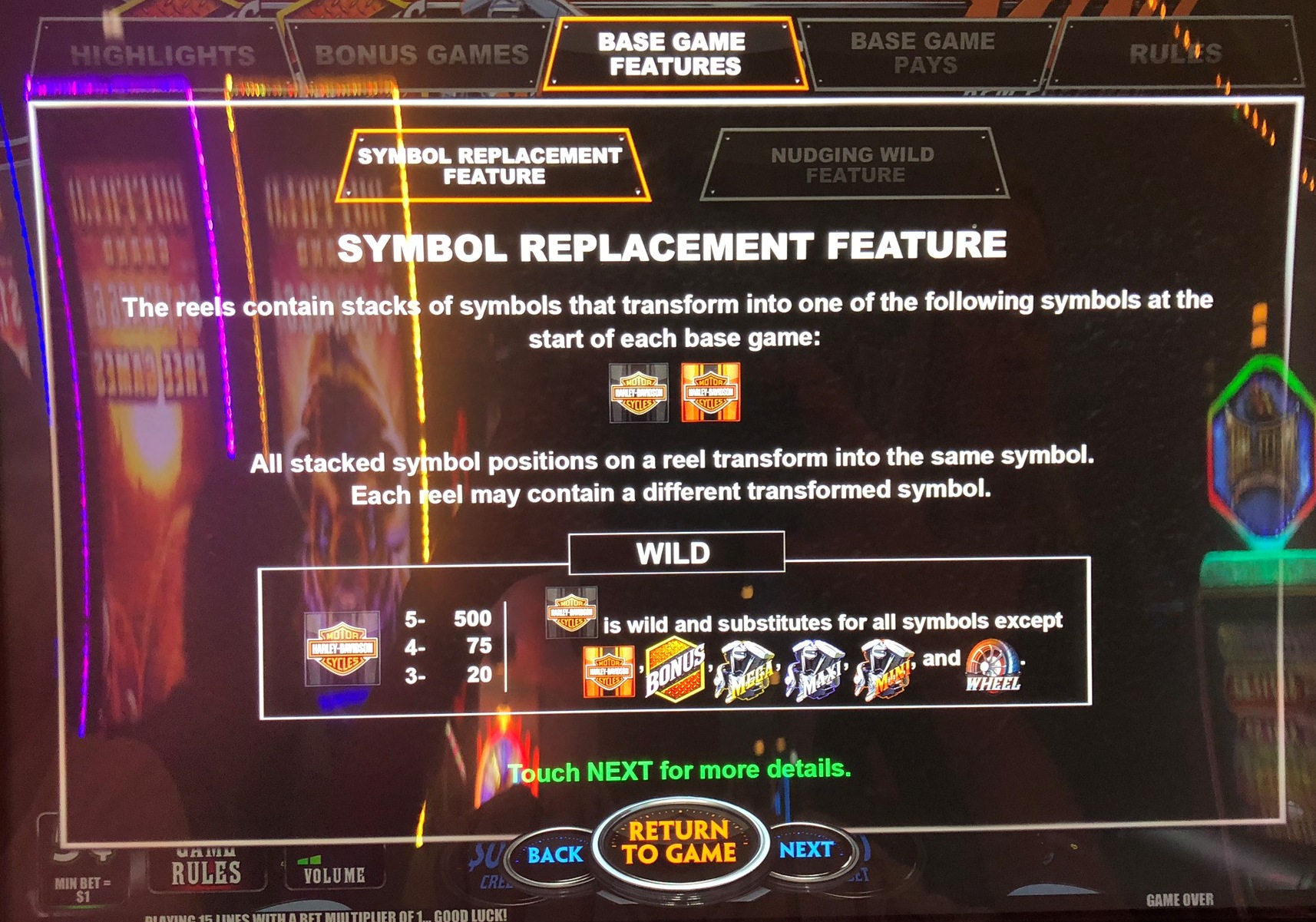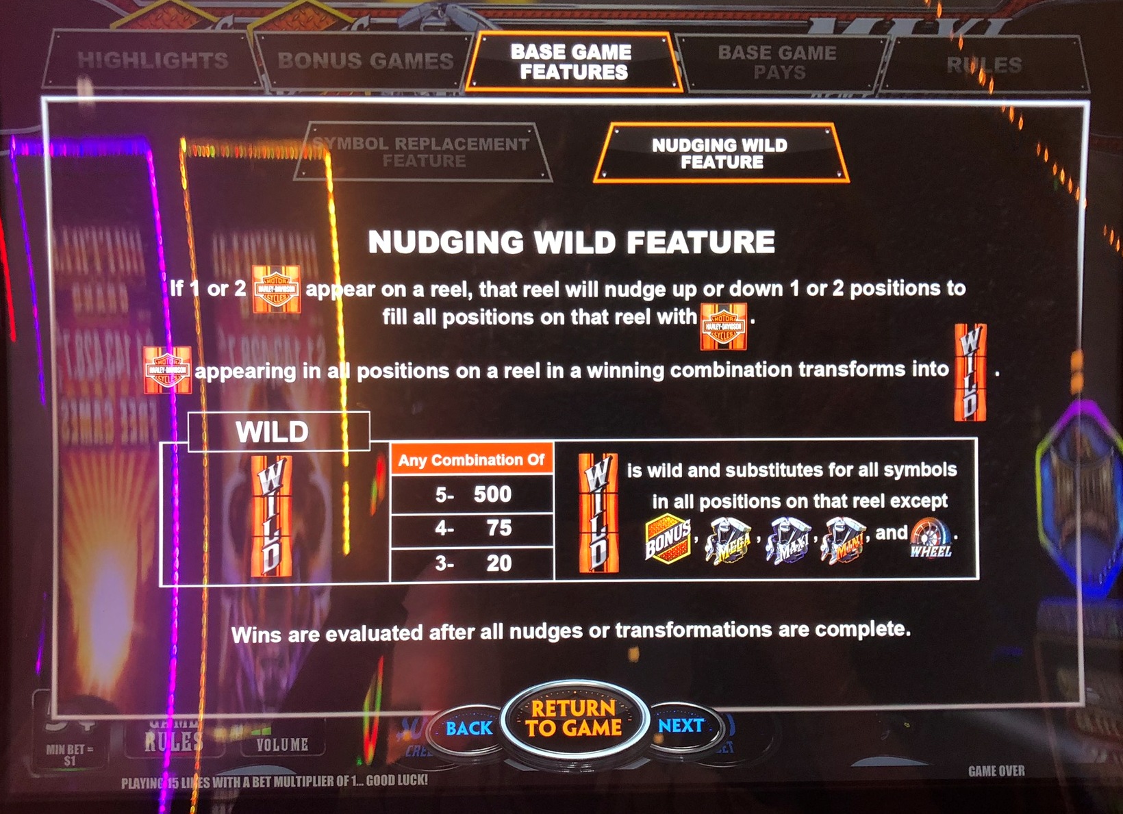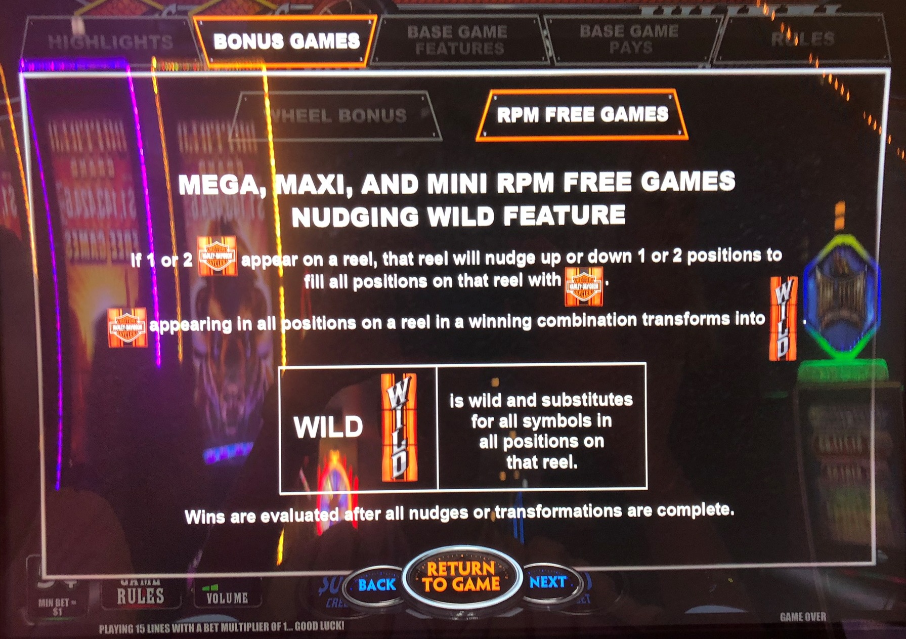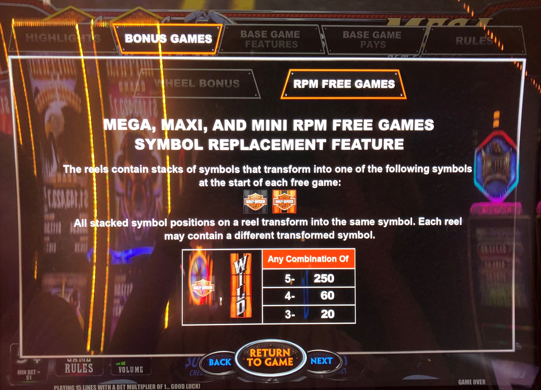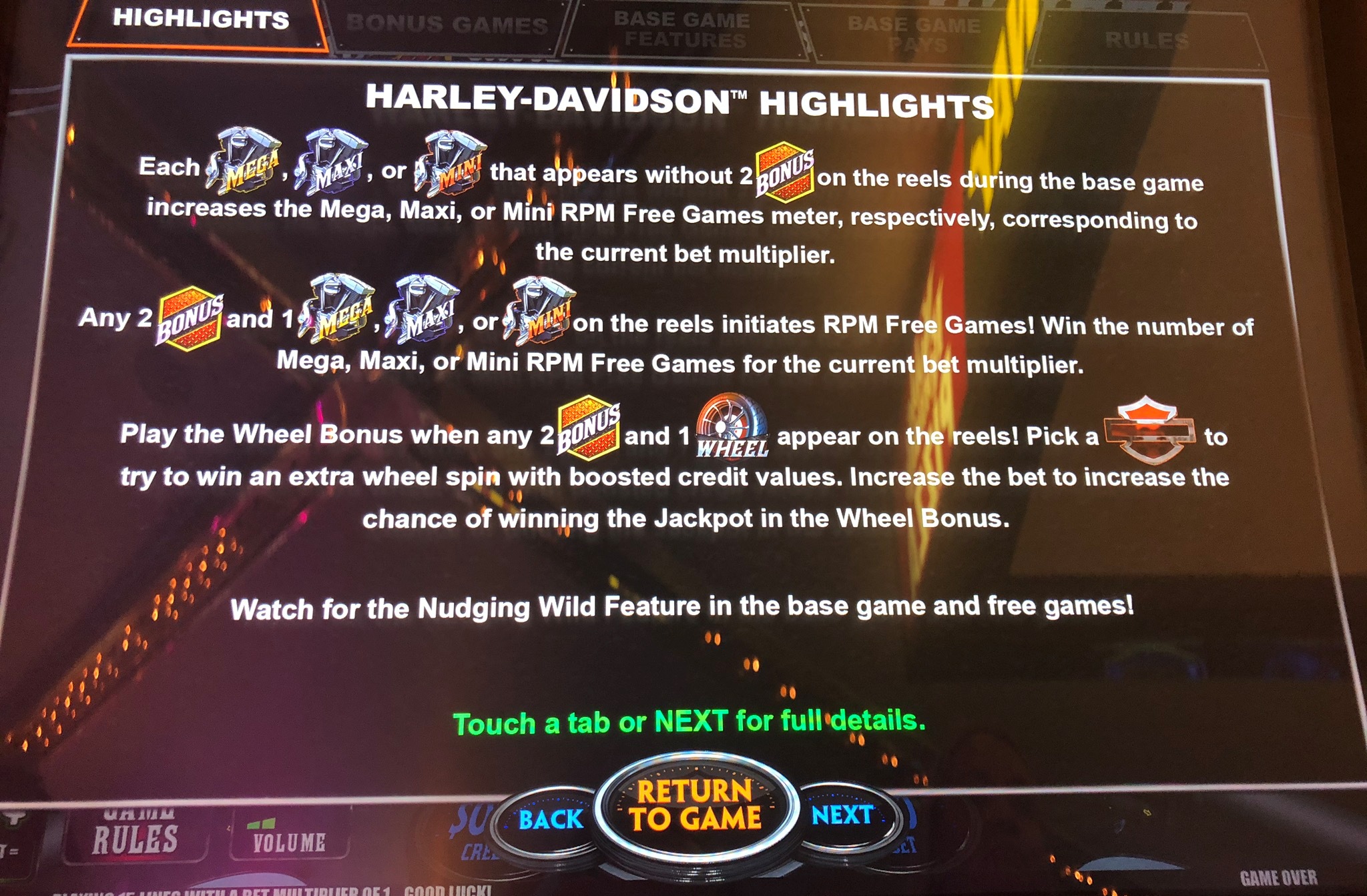 हार्ले डेविडसन स्लॉट्स को उद्योग में "परिवर्तनशील-अवस्था" वाले गेम के रूप में जाना जाता है। इसका मतलब है कि किसी भी स्पिन पर अपेक्षित रिटर्न परिवर्तनशील होता है, जो पिछले खिलाड़ियों द्वारा गेम में जमा किए गए या निकाले गए मूल्य पर निर्भर करता है। विशेष रूप से, इसमें एक मुफ़्त स्पिन बोनस होता है, जहाँ मुफ़्त स्पिन की संख्या के लिए बढ़ते मीटर होते हैं। यदि मीटर पर्याप्त रूप से उच्च हैं, तो गेम 100% से अधिक का अपेक्षित रिटर्न प्रदान करता है।