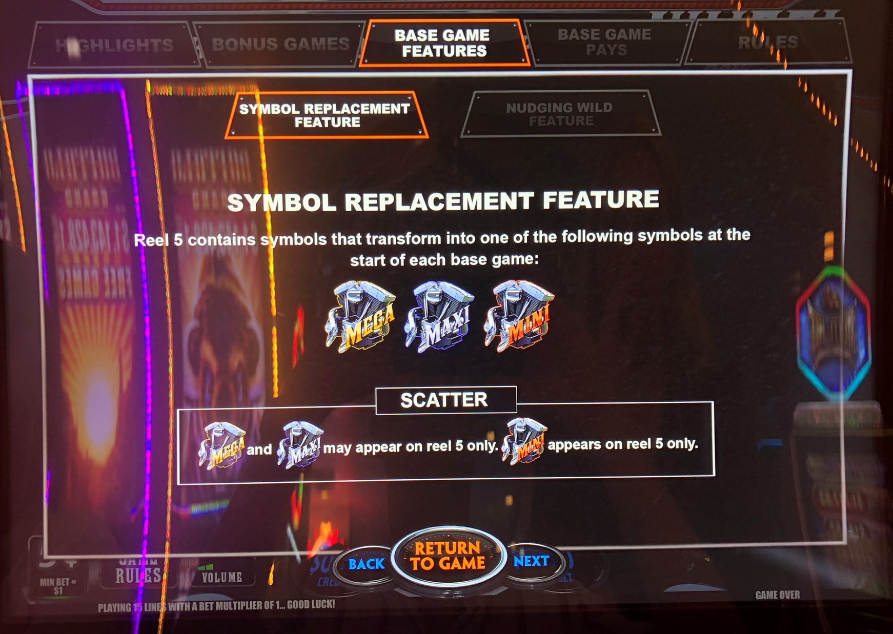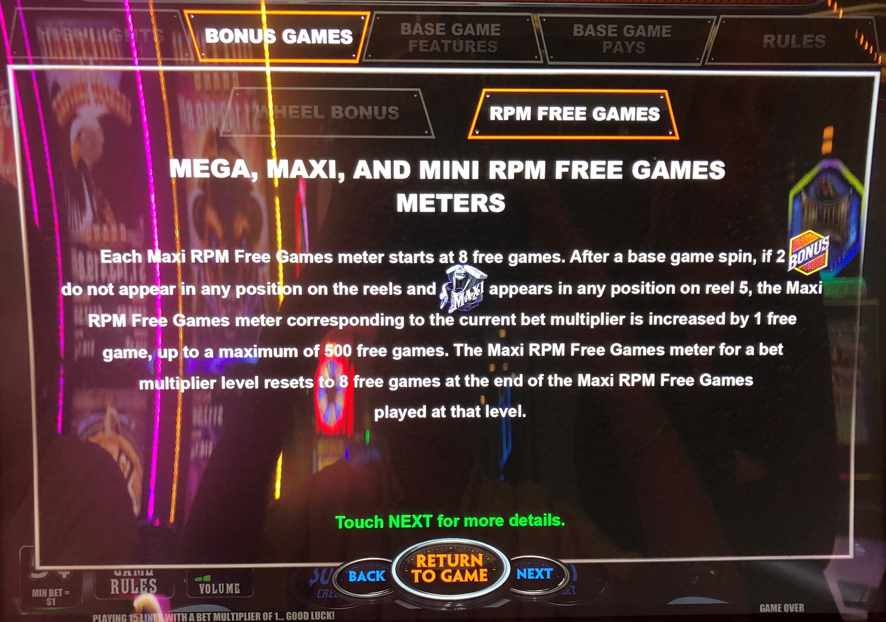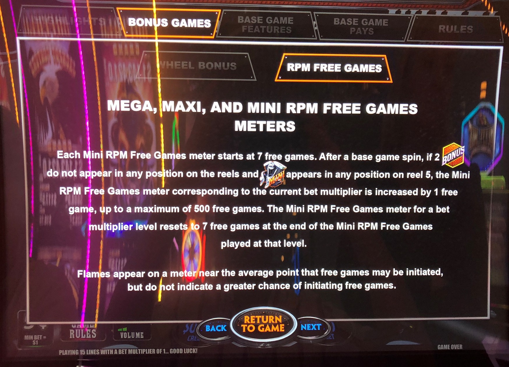 यदि खिलाड़ी को 0 या 1 स्कैटर और कोई भी मुफ़्त गेम बोनस प्रतीक मिलता है, तो उस विशिष्ट मुफ़्त गेम बोनस प्रतीक के मीटर में एक अतिरिक्त मुफ़्त गेम जोड़ा जाएगा। उदाहरण के लिए, यदि मैक्सी फ़्री स्पिन बोनस के मीटर में 20 मुफ़्त स्पिन हैं और अगले स्पिन के परिणामस्वरूप रील 5 पर एक मैक्सी फ़्री स्पिन प्रतीक दिखाई देता है (रील 1 और 3 पर दो से कम स्कैटर के साथ), तो मैक्सी फ़्री स्पिन मीटर एक बढ़ाकर 21 कर दिया जाएगा।