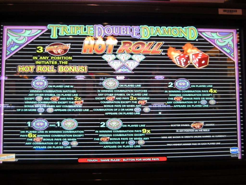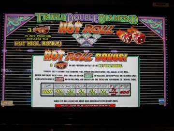 हॉट रोल, निर्माता IGT द्वारा विभिन्न 3-रील स्लॉट मशीनों में जोड़ा गया एक बोनस फ़ीचर है। इस विश्लेषण के अनुसार, यह क्लासिक गेम ट्रिपल डबल डायमंड पर आधारित है। अगर खिलाड़ी को तीनों रीलों पर हॉट रोल आइकन दिखाई देता है, तो वह क्रेप्स-आधारित बोनस गेम खेलेगा। इस गेम में, खिलाड़ी दो पासे फेंकता रहेगा और पैसे जीतता रहेगा, जब तक कि उसे सात नहीं आ जाता, जिससे बोनस समाप्त हो जाता है।