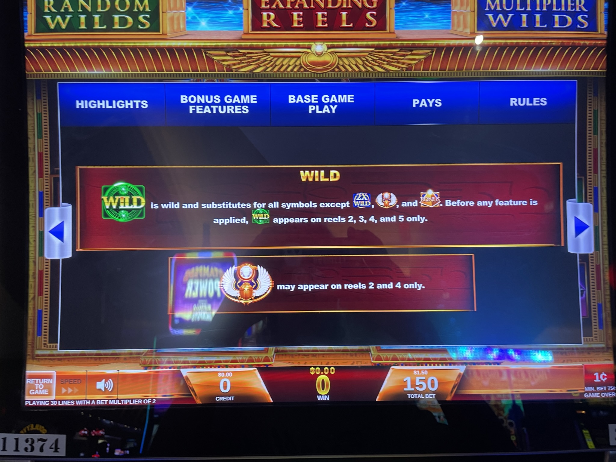 - स्कारैब और पिरामिड प्रतीक फीचर स्पिन में दिखाई नहीं देते हैं।