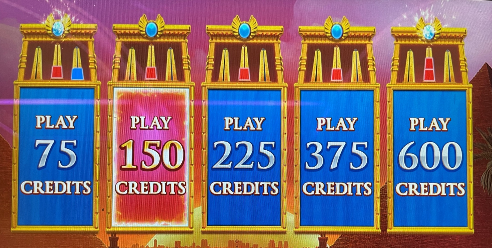 खेल में पाँच अलग-अलग दांव स्तर उपलब्ध हैं। हर एक अलग खेल की तरह है, जिसे एक अलग अवस्था में छोड़ दिया गया है। स्लॉट गिद्धों के लिए अच्छी बात यह है कि दांव लगाने वाला पैनल सभी पाँच स्तरों पर जगमगाते प्रत्येक ओबिलिस्क के टुकड़ों की संख्या दिखाता है। वे इसे और भी आसान बनाते हैं, क्योंकि अगर कम से कम दो टुकड़े जगमगाते हैं, तो ओबिलिस्क के ऊपर का रत्न हीरे की तरह चमकता हुआ दिखाई देता है। उदाहरण के लिए, नीचे दी गई तस्वीर में $0.75 और $6.00 के दांव स्तरों पर प्रत्येक पर दो टुकड़े जगमगाते हैं, और उन ओबिलिस्क के ऊपर का रत्न जगमगा रहा है।