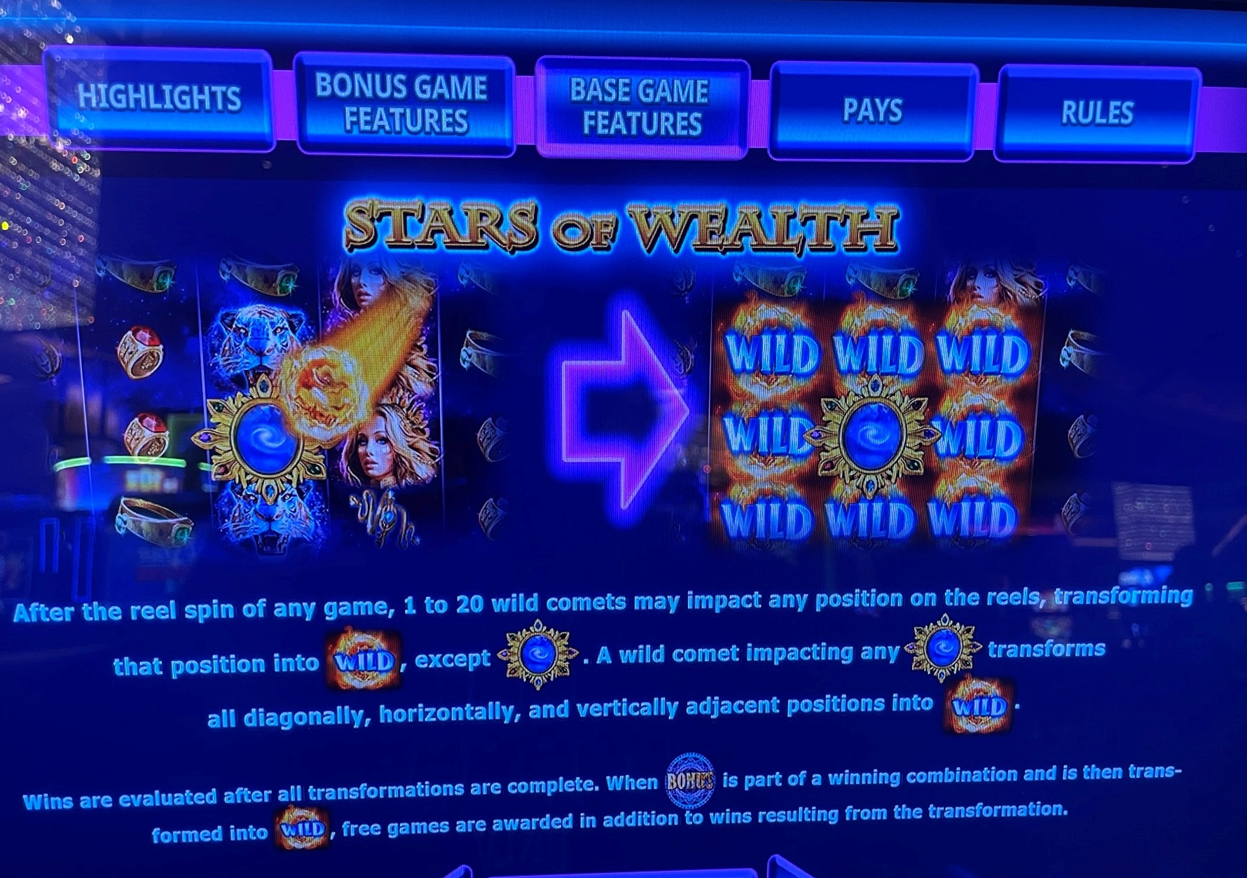 - कभी-कभी आसमान से कोई उल्कापिंड गिरता है और प्रतीकों को वाइल्ड में बदल देता है। इस उद्योग में, इसे "एक्सप्लोडिंग वाइल्ड" कहा जाता है।