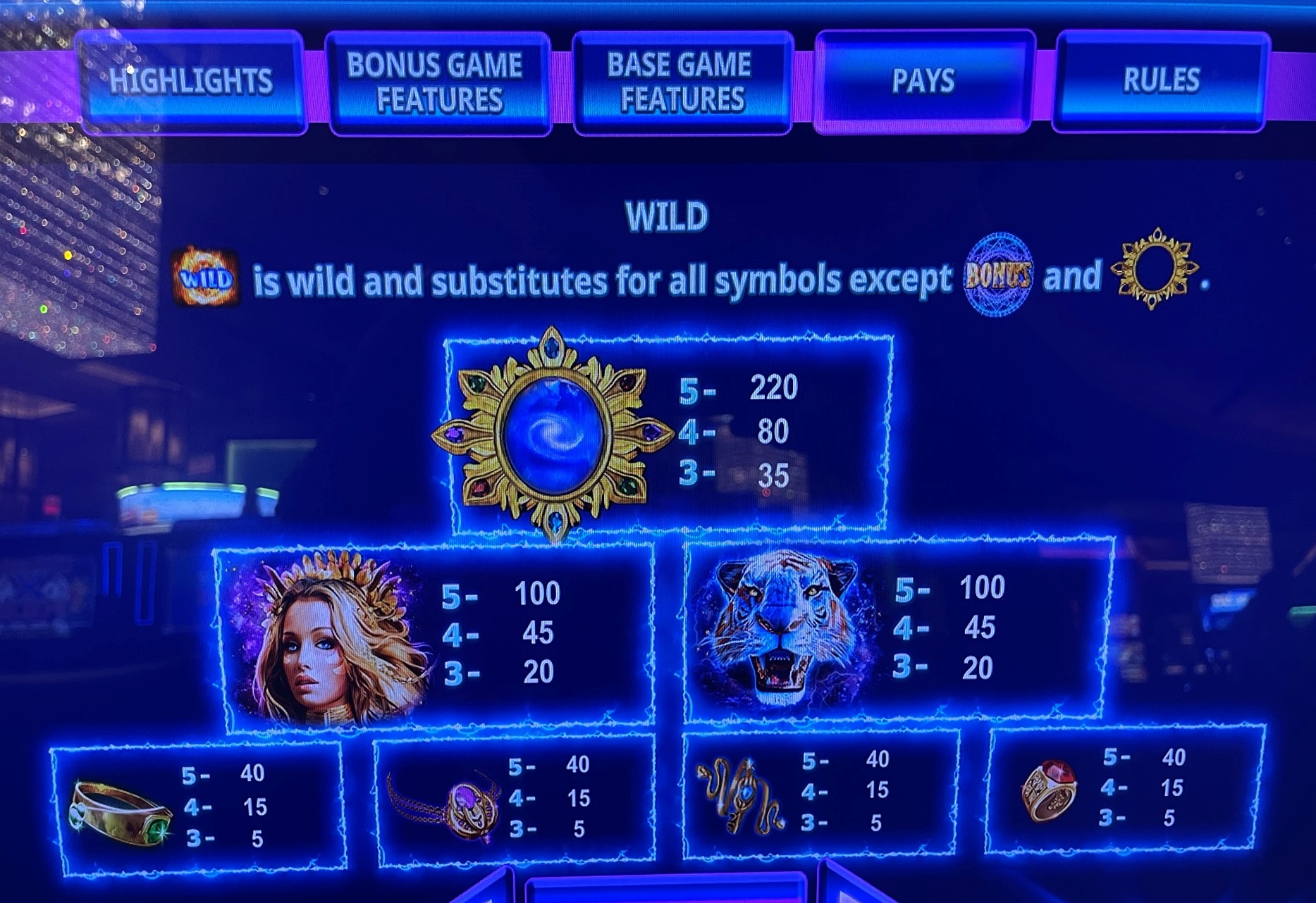 कई अन्य स्लॉट्स की तरह, स्टार गॉडेस एक 5-रील 4-रो गेम है जिसमें 3 या उससे ज़्यादा स्कैटर पाने पर बोनस गेम सुविधा मिलती है। इस गेम की कुछ खास विशेषताएं इस प्रकार हैं: