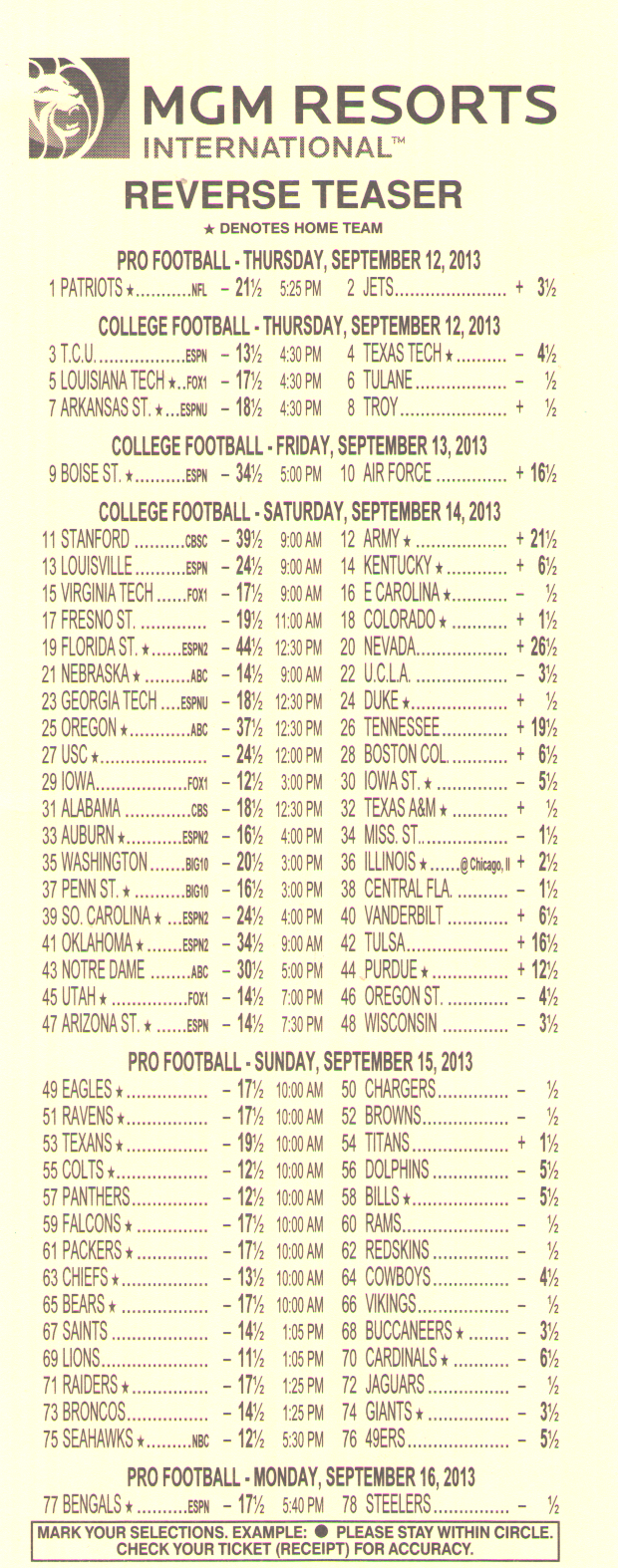 - एनएफएल में टीज़र बेट्स