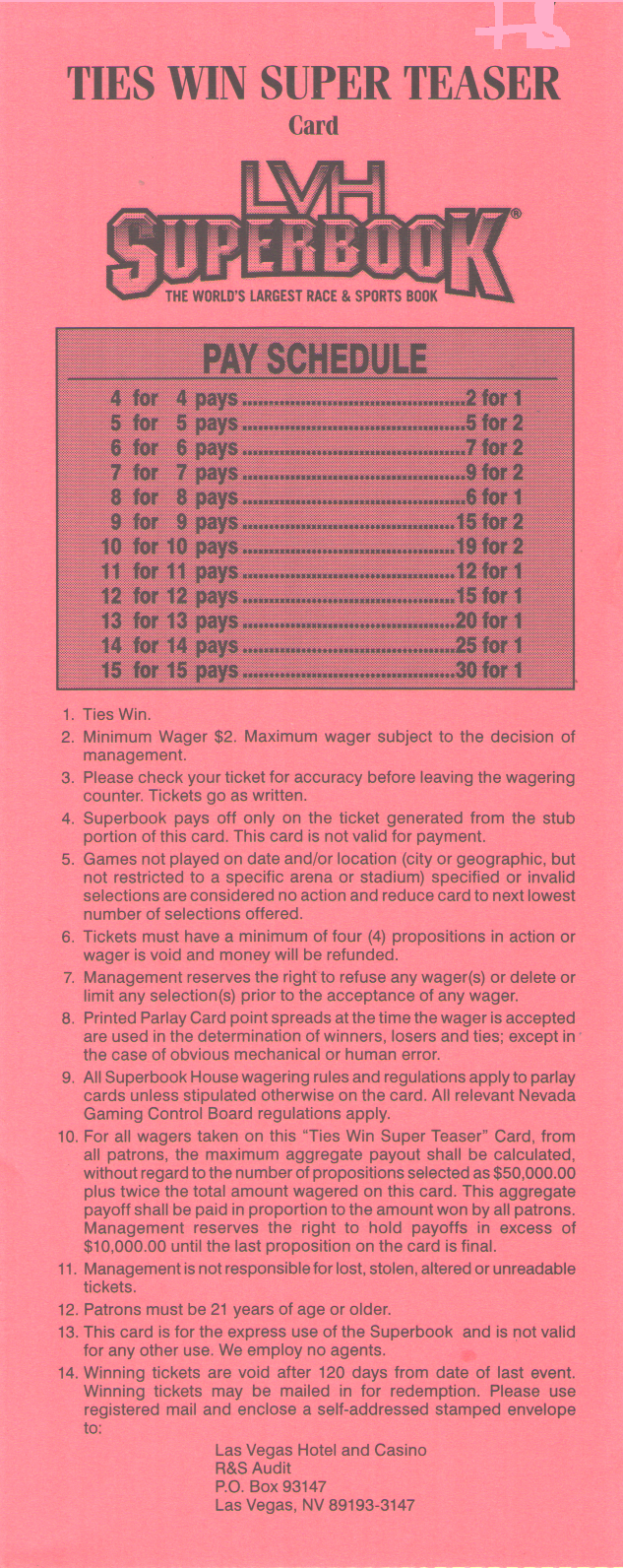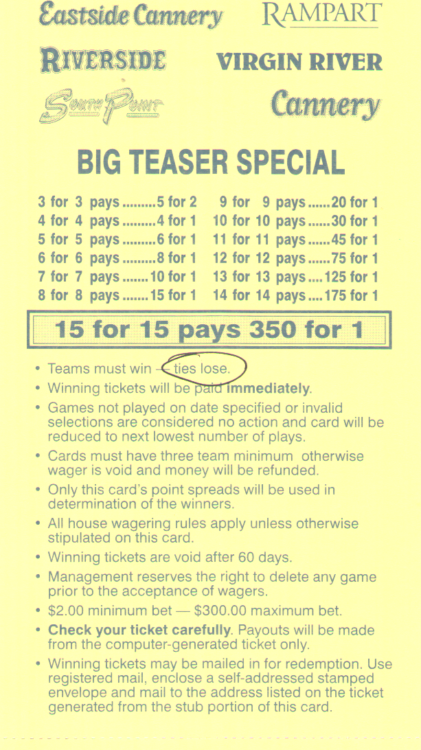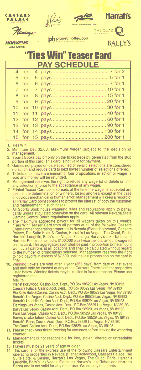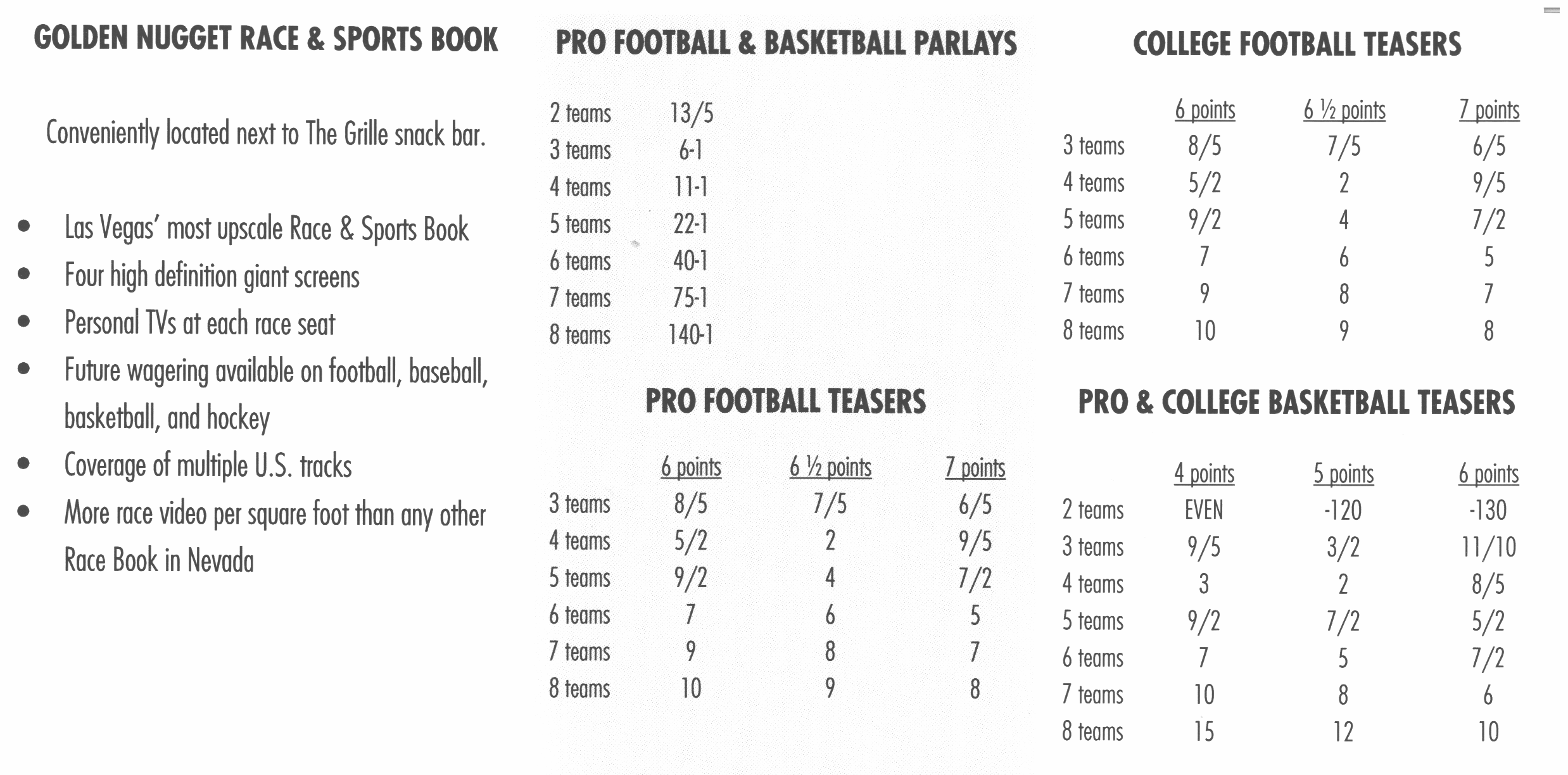 - लास वेगास खेल सट्टेबाजी सर्वेक्षण - प्रत्येक खेल पुस्तक परिवार परले और टीज़र पर कितना भुगतान करता है।