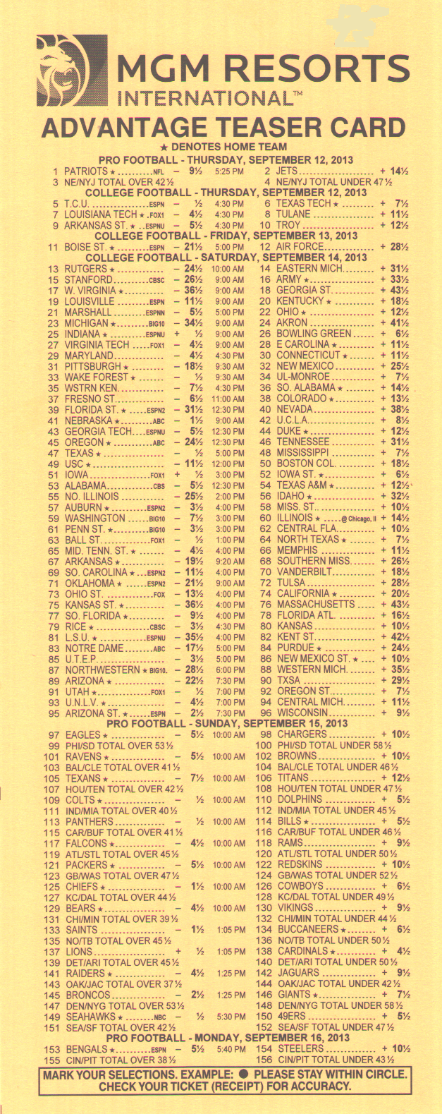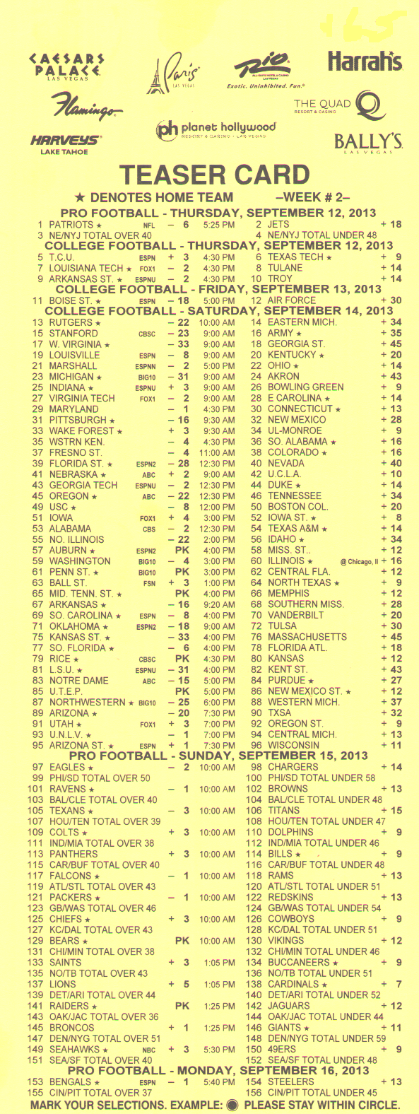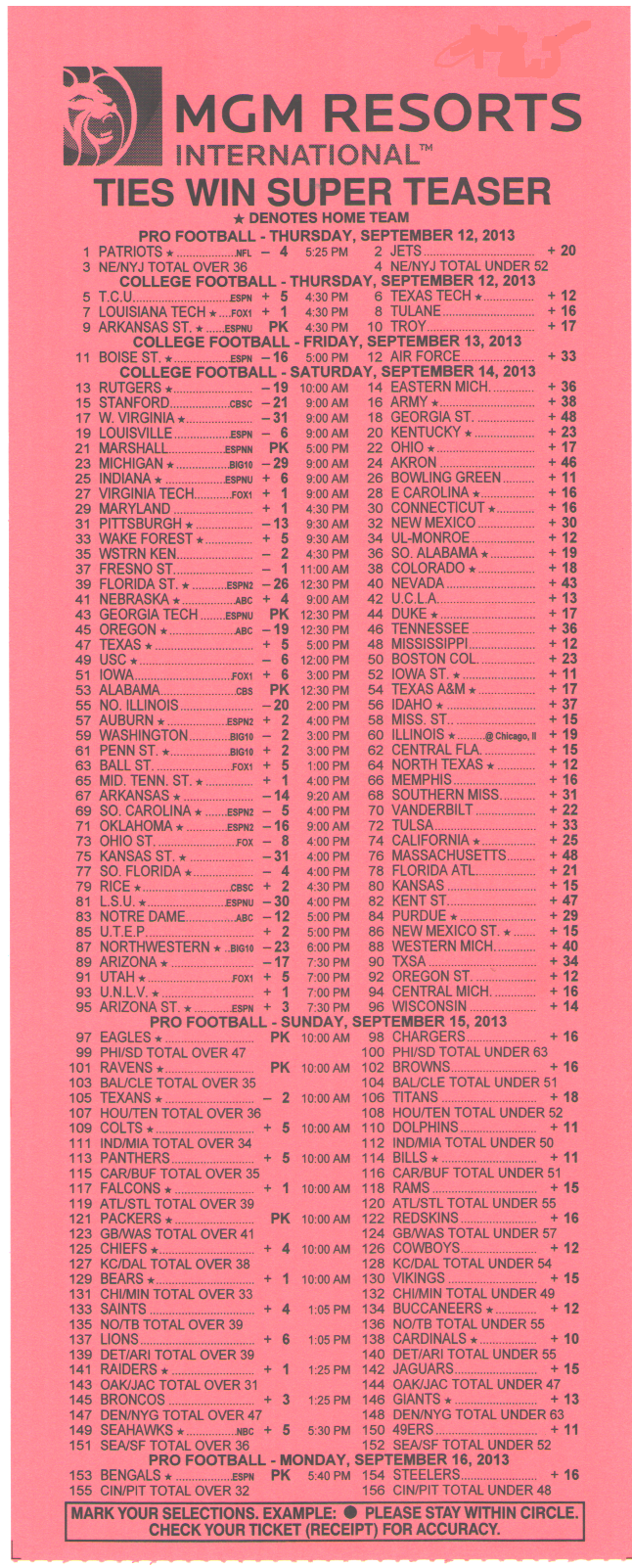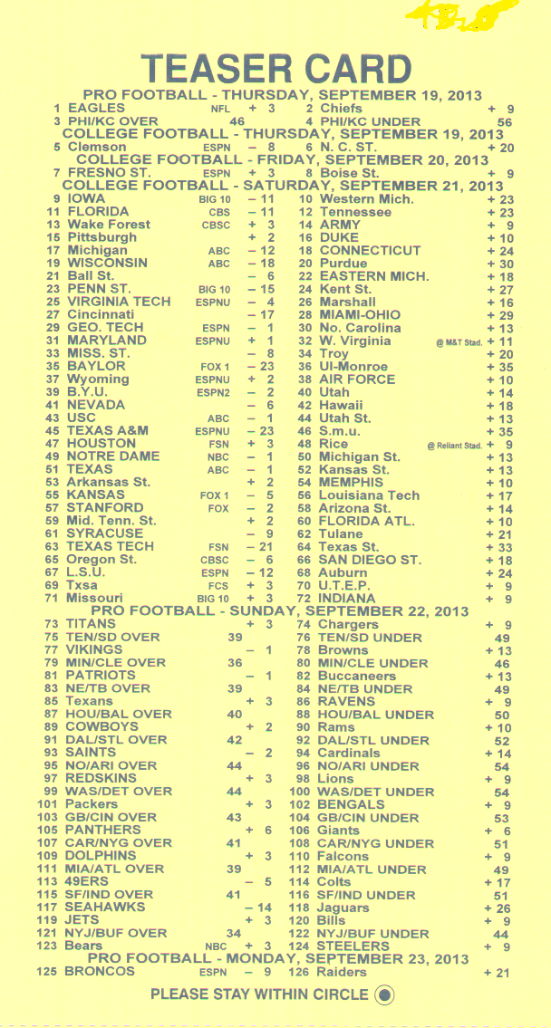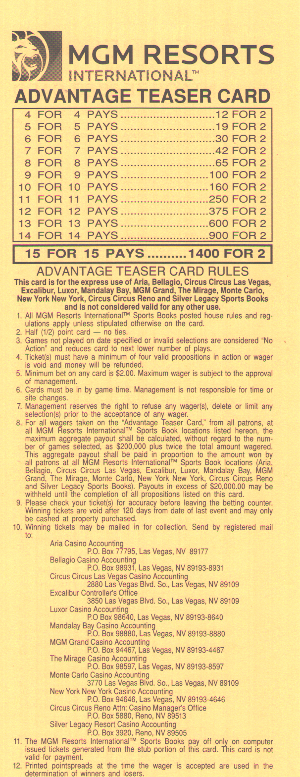 दुर्भाग्य से, 2-लेग के लिए -110, 3-लेग के लिए +180, और 4-लेग के लिए +300 के उदार ऑड्स 6-पॉइंट एनएफएल टीज़र के साथ 2014 सीज़न में डोडो बर्ड की तरह ही खत्म होते दिख रहे हैं। आखिरी होल्डआउट जेरीज़ नगेट ने 2014 सीज़न में अपने ऑड्स कम कर दिए।