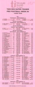 दो स्पोर्ट्स बुक, ट्रेजर आइलैंड और वेस्टगेट, 9.5-पॉइंट टीज़र ऑफर करते हैं। उनकी पे-टेबल इस प्रकार हैं। जैसा कि आप देख सकते हैं, ट्रेजर आइलैंड लगातार बेहतर ऑड्स देता है।