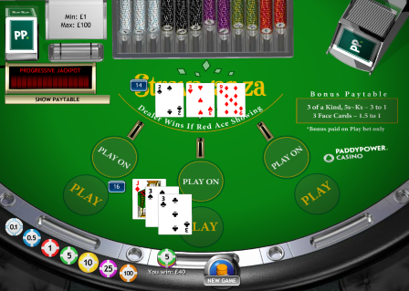 - खेल की शुरुआत खिलाड़ी द्वारा प्ले बेट लगाने से होती है। एक वैकल्पिक प्रोग्रेसिव साइड बेट भी उपलब्ध है।