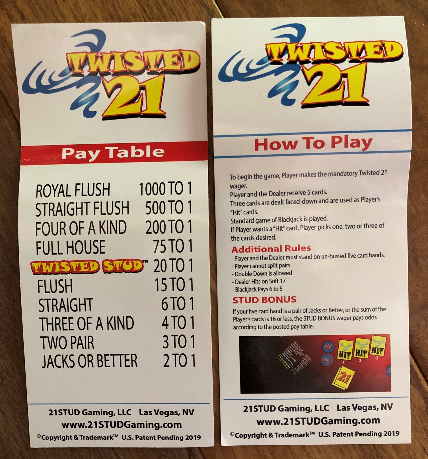 - ट्विस्टेड 21 दांव अनिवार्य है और स्टड बोनस वैकल्पिक है।