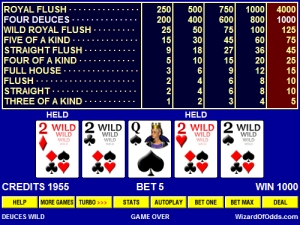 - खिलाड़ी को उसके हाथ के पोकर मूल्य और पोस्ट की गई भुगतान तालिका के अनुसार भुगतान किया जाता है।