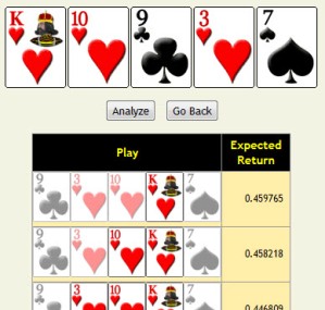 मेरा वीडियो पोकर विश्लेषक कुछ ही सेकंड में किसी भी वीडियो पोकर गेम के लिए रिटर्न की गणना कर देगा।