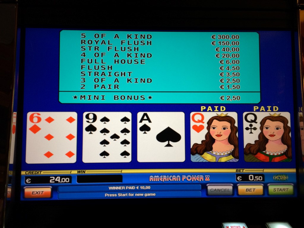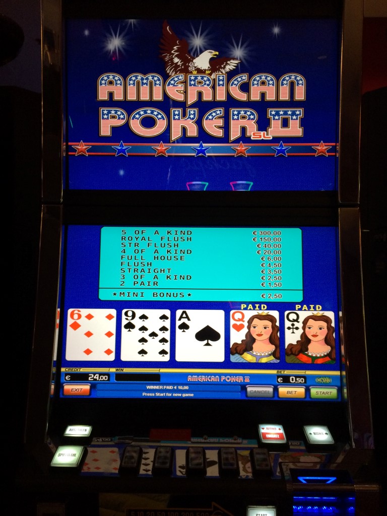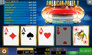 "अमेरिकन पोकर" शायद जुए में सबसे बड़ा मिथ्या नाम है। यह वीडियो पोकर का एक रूप है जो संयुक्त राज्य अमेरिका में नहीं, बल्कि जर्मनी में खेला जाता है। मुझे नहीं पता कि इसे "अमेरिकन पोकर" क्यों कहा जाता है।