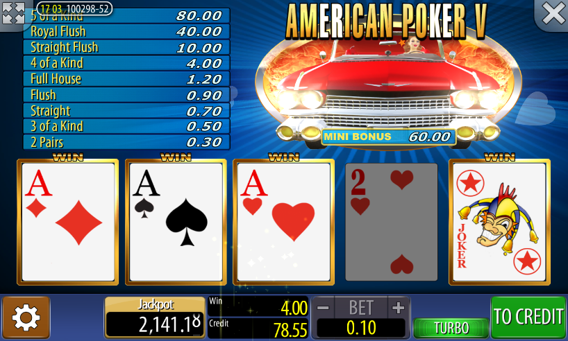 जोकर पोकर — अमेरिकन पोकर V पे टेबल