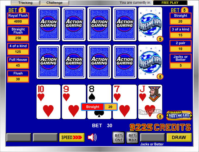 VideoPoker.com पर ड्रीम कार्ड का एक अच्छा डेमो उपलब्ध है। खेलने के लिए पंजीकरण आवश्यक है।