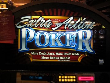 एक्स्ट्रा एक्शन पोकर एक वीडियो पोकर संस्करण है जिसे मैंने 23 फ़रवरी, 2014 को ग्रीन वैली रैंच में देखा था। यह खेल पारंपरिक वीडियो पोकर की तरह ही खेला जाता है, सिवाय इसके कि इसमें एक अतिरिक्त दांव होता है, और अगर खिलाड़ी कम से कम एक ऐस (या ड्यूस वाइल्ड गेम्स में एक ड्यूस) प्राप्त करता है, तो उसे बोनस हैंड मिलता है। इसके पूरे नियम निम्नलिखित हैं।