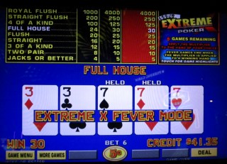 एक्सट्रीम एक्स पोकर, आईजीटी द्वारा निर्मित एक वीडियो पोकर संस्करण है जिसमें ड्रॉ में किसी भी फुल हाउस या उससे बेहतर के बाद गुणक-आधारित बोनस मिलता है। बोनस मिलने के बाद, खिलाड़ी के पास गुणक को स्वीकार करने के लिए पाँच "फीवर गेम्स" होते हैं। यह एक दिलचस्प रणनीति है कि इसे मामूली जीत पर स्वीकार किया जाए या पाँच फीवर गेम्स खत्म होने से पहले इसे लागू करने के लिए बड़ी जीत की कोशिश की जाए।
