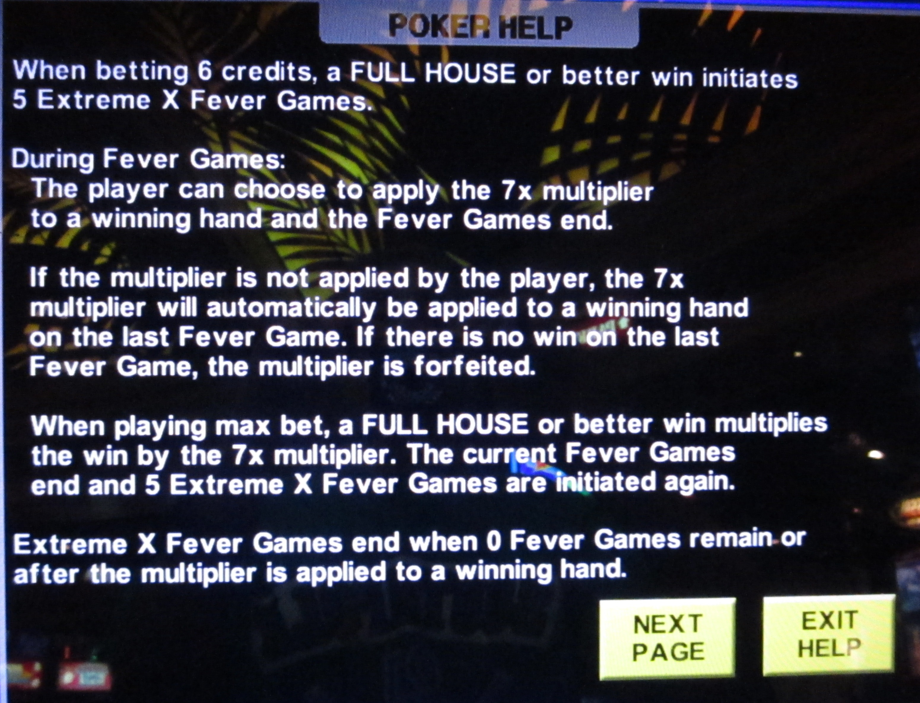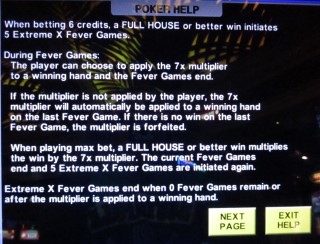- यदि खिलाड़ी छह सिक्के दांव पर लगाता है और ड्रॉ पर फुल हाउस या उससे बेहतर प्राप्त करता है, तो वह पांच फीवर गेम्स अर्जित करेगा।