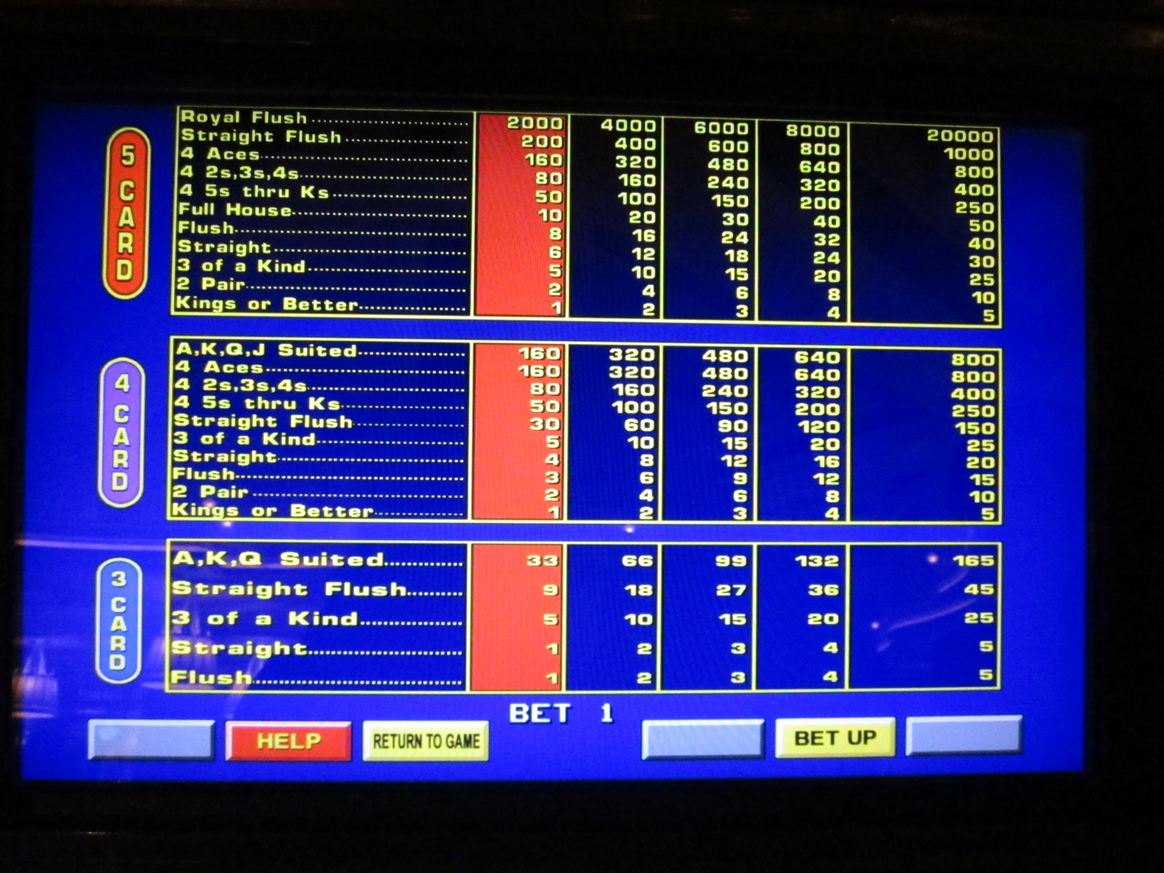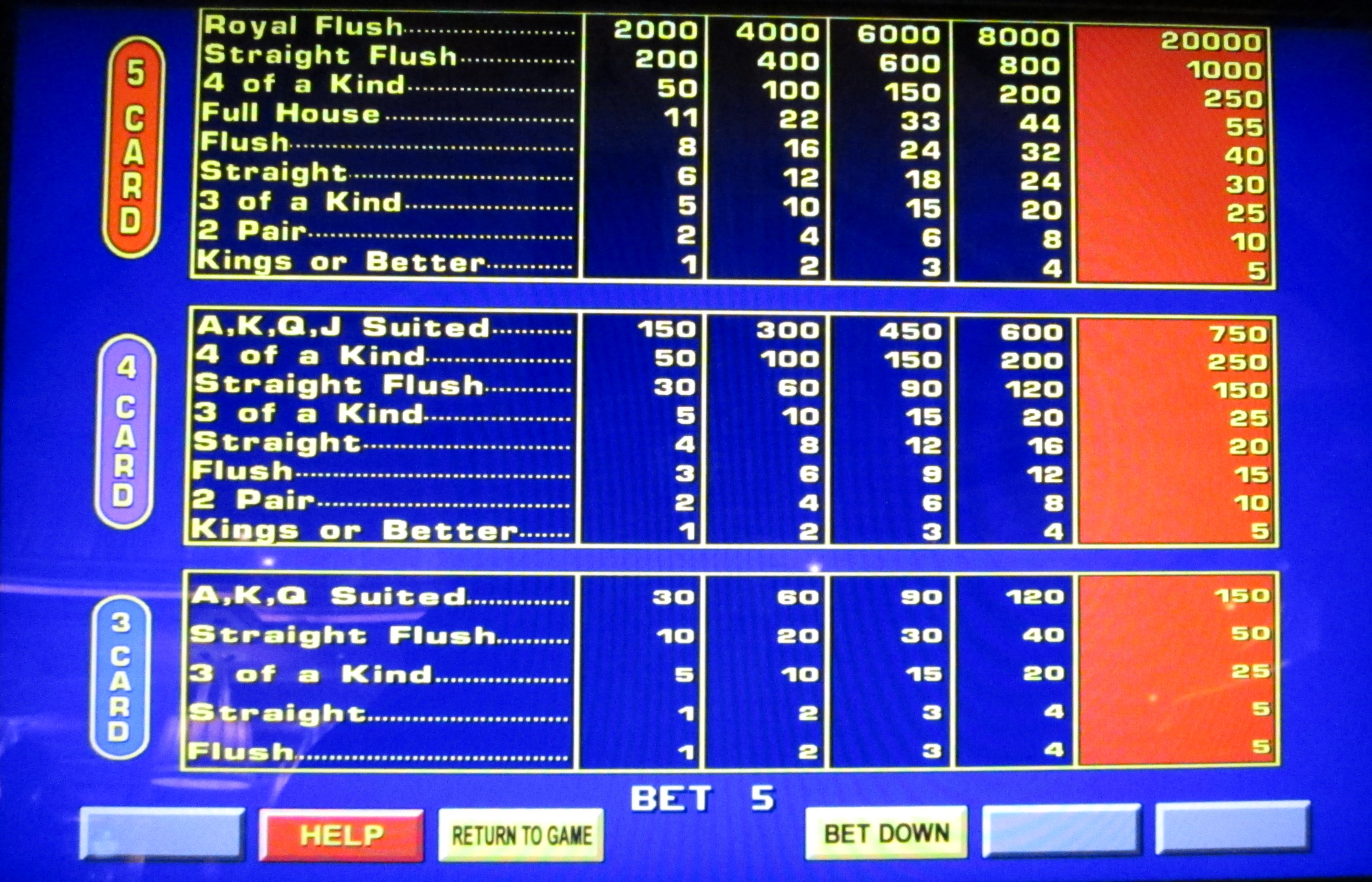 | 5 | स्ट्रेट फ्लश | 250 | 250 | 250 | 200 |