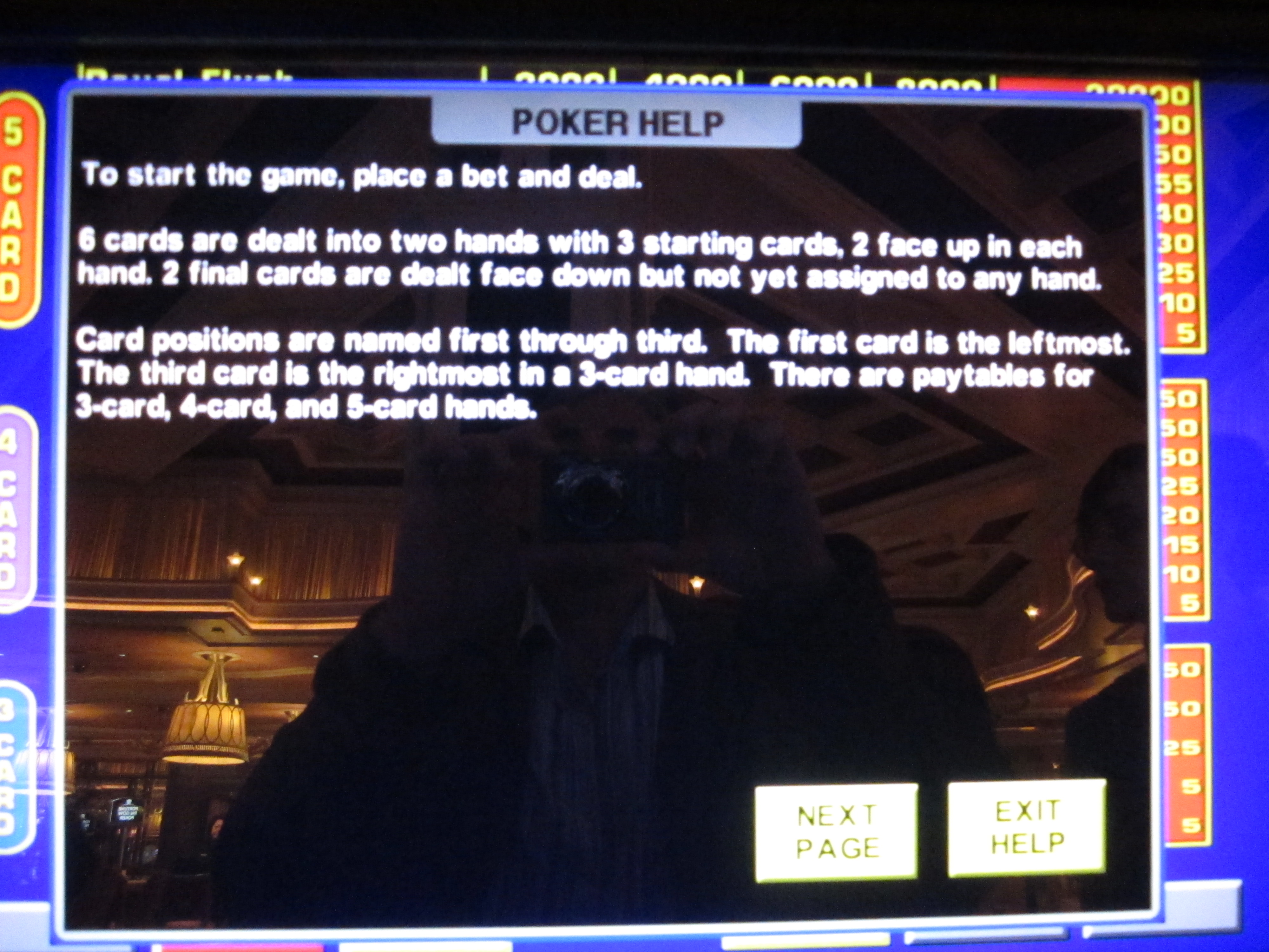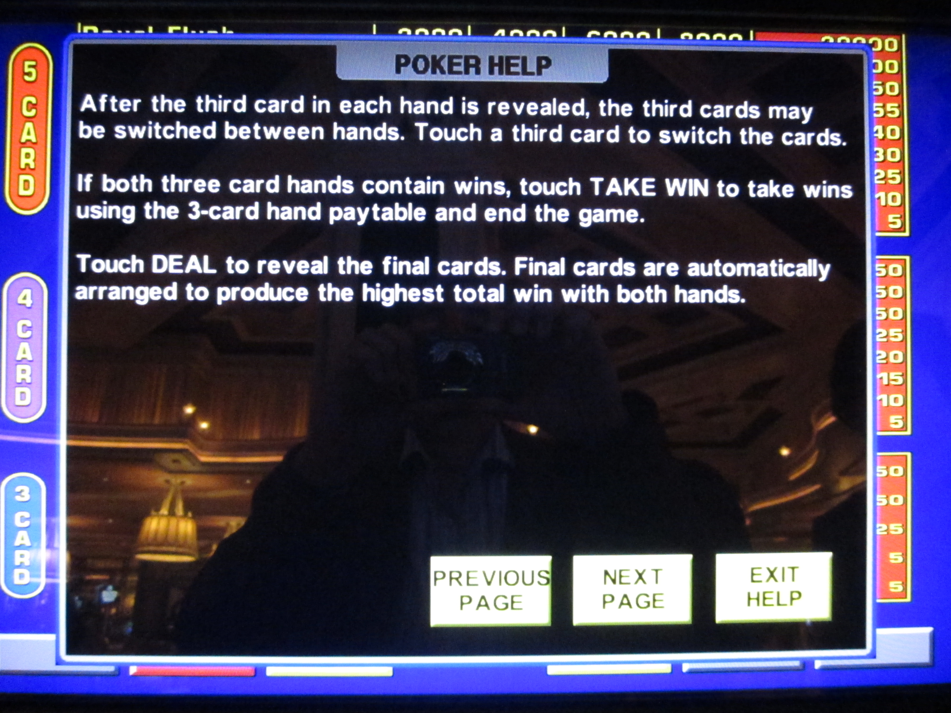 - खिलाड़ी दो वीडियो पोकर हाथों पर दो बराबर दांव लगाएगा। प्रत्येक हाथ पर अधिकतम दांव पाँच क्रेडिट का है, इसलिए एक पूरा दांव दस क्रेडिट का होगा।