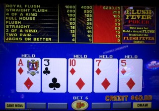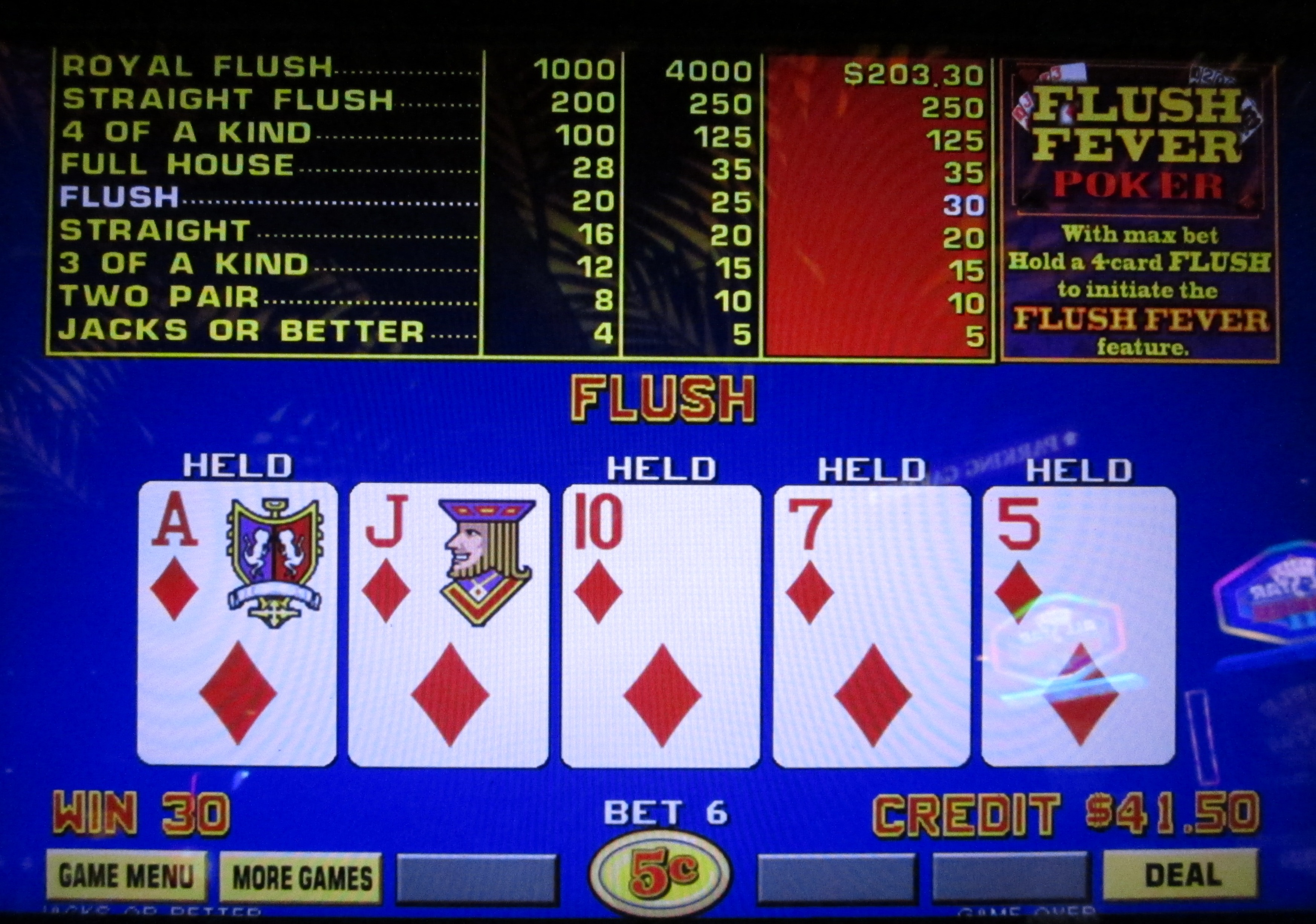 कई साल पहले ओरेगॉन में मुझे फ्लश फीवर नाम का एक और गेम देखने को मिला था, जिसमें ड्रॉ पर किसी भी फ्लश के बाद एक मुफ़्त गेम बोनस राउंड की एक अलग अवधारणा थी। दोनों खेलों में अंतर करने के लिए, मैं मुफ़्त गेम वाले संस्करण को ओरेगॉन संस्करण और यहाँ जिस खेल की बात हो रही है उसे नेवादा संस्करण कहूँगा। बात को और भी उलझाने वाली बात यह है कि मैंने सुना है कि साउथ डकोटा में फ्लश फीवर का एक और संस्करण है, लेकिन मुझे इसके बारे में कुछ भी पता नहीं है।