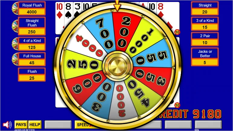 फुल हाउस प्लस व्हील पोकर बनाने वाली कंपनी, एक्शन गेमिंग, 11 अलग-अलग संभावित व्हील्स का इस्तेमाल करती है। सभी पुरस्कार समान हैं, लेकिन हर पुरस्कार का भारांक थोड़ा अलग-अलग है। सामान्य तौर पर, भुगतान तालिका जितनी उदार होगी, व्हील पर औसत जीत उतनी ही ज़्यादा होगी। इसके अलावा, वाइल्ड कार्ड गेम्स में व्हील्स की औसत जीत ज़्यादा होती है, ऐसा मेरा मानना है क्योंकि क्वालीफाइंग हैंड मिलने की संभावना कम होती है, यह मानते हुए कि खिलाड़ी की रणनीति सही है।
