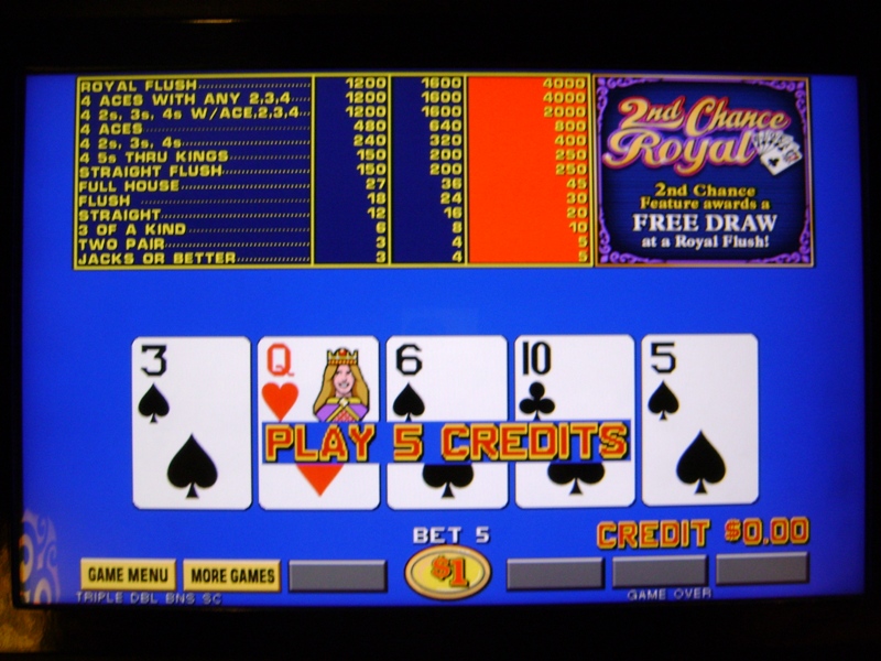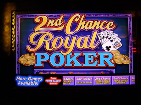 सेकंड चांस रॉयल का मुख्य उद्देश्य यह है कि अगर खिलाड़ी अधिकतम 5 सिक्कों का दांव लगाता है और ड्रॉ के बाद रॉयल के मुकाबले चार सिक्के मिलते हैं, तो उसे दूसरा ड्रॉ मिलता है। यह मुफ़्त है - किसी अतिरिक्त दांव की आवश्यकता नहीं है। बेशक, वेगास में कुछ भी पूरी तरह मुफ़्त नहीं है, इसलिए कैसीनो इस सुविधा के लिए भुगतान तालिका को थोड़ा कम कर सकता है। खिलाड़ी को पहले और दूसरे ड्रॉ दोनों में सभी जीत के लिए भुगतान किया जाएगा। हालाँकि, दूसरे ड्रॉ में रॉयल मिलने पर खिलाड़ी के दांव का 200 गुना भुगतान होता है, न कि सामान्य 800।