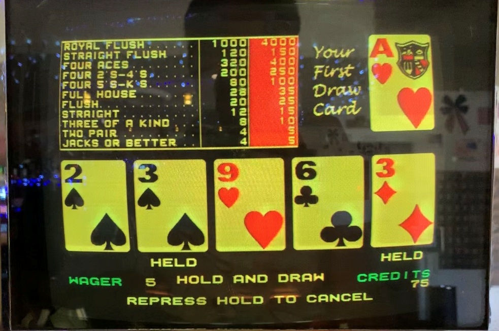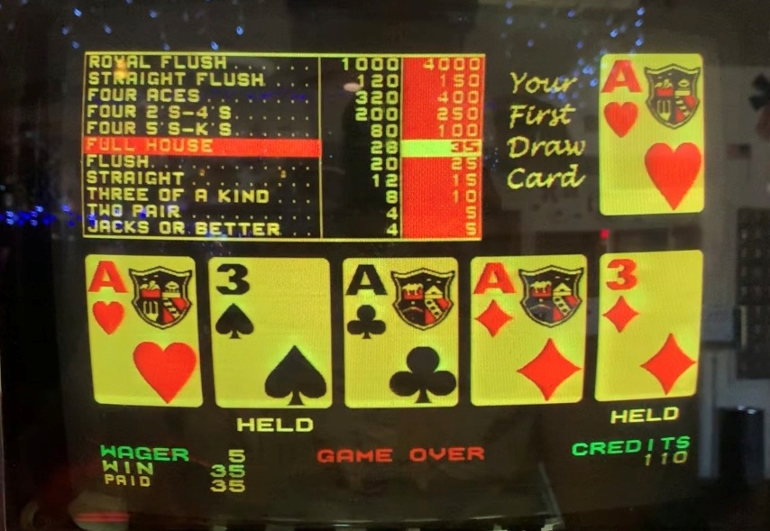 ड्रॉ होने पर, खिलाड़ी को बायीं स्थिति में पान का इक्का मिलता है, साथ ही दो और इक्के मिलते हैं, जिससे फुल हाउस बनता है।