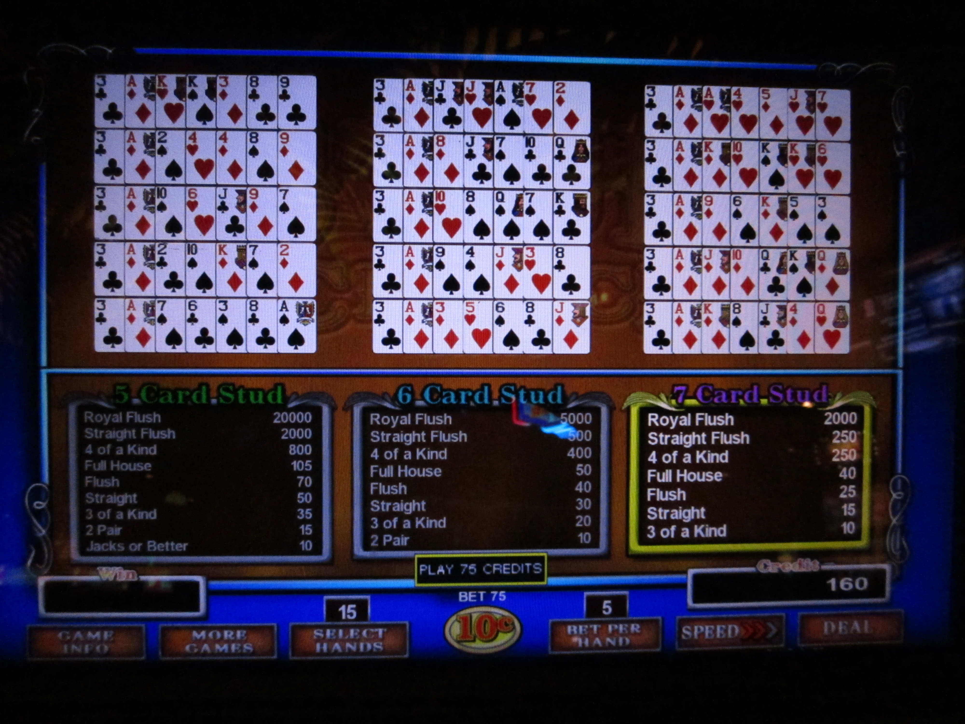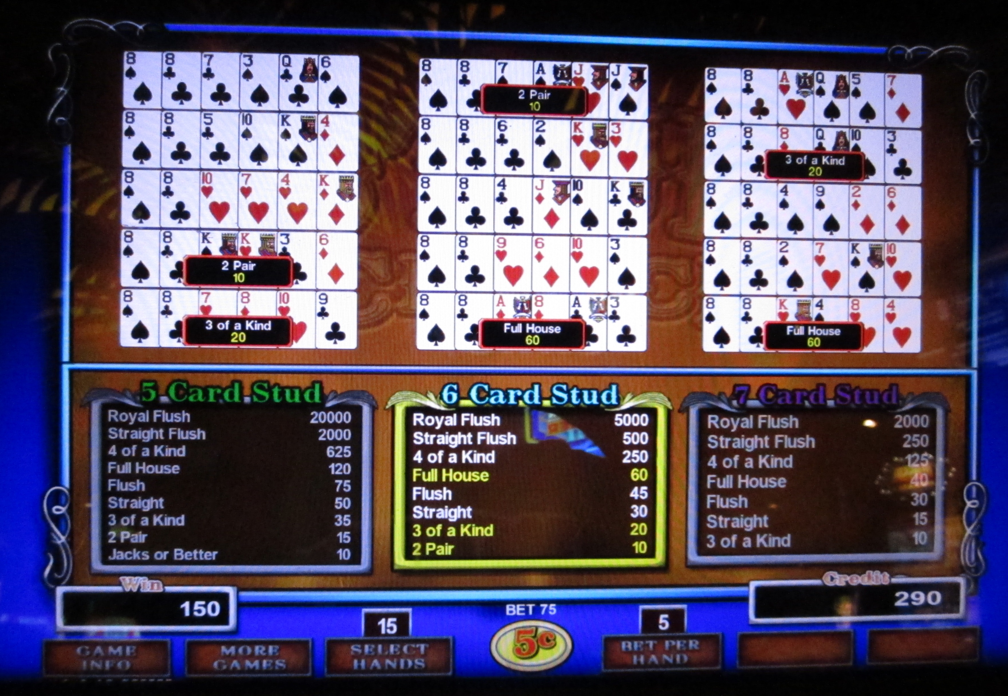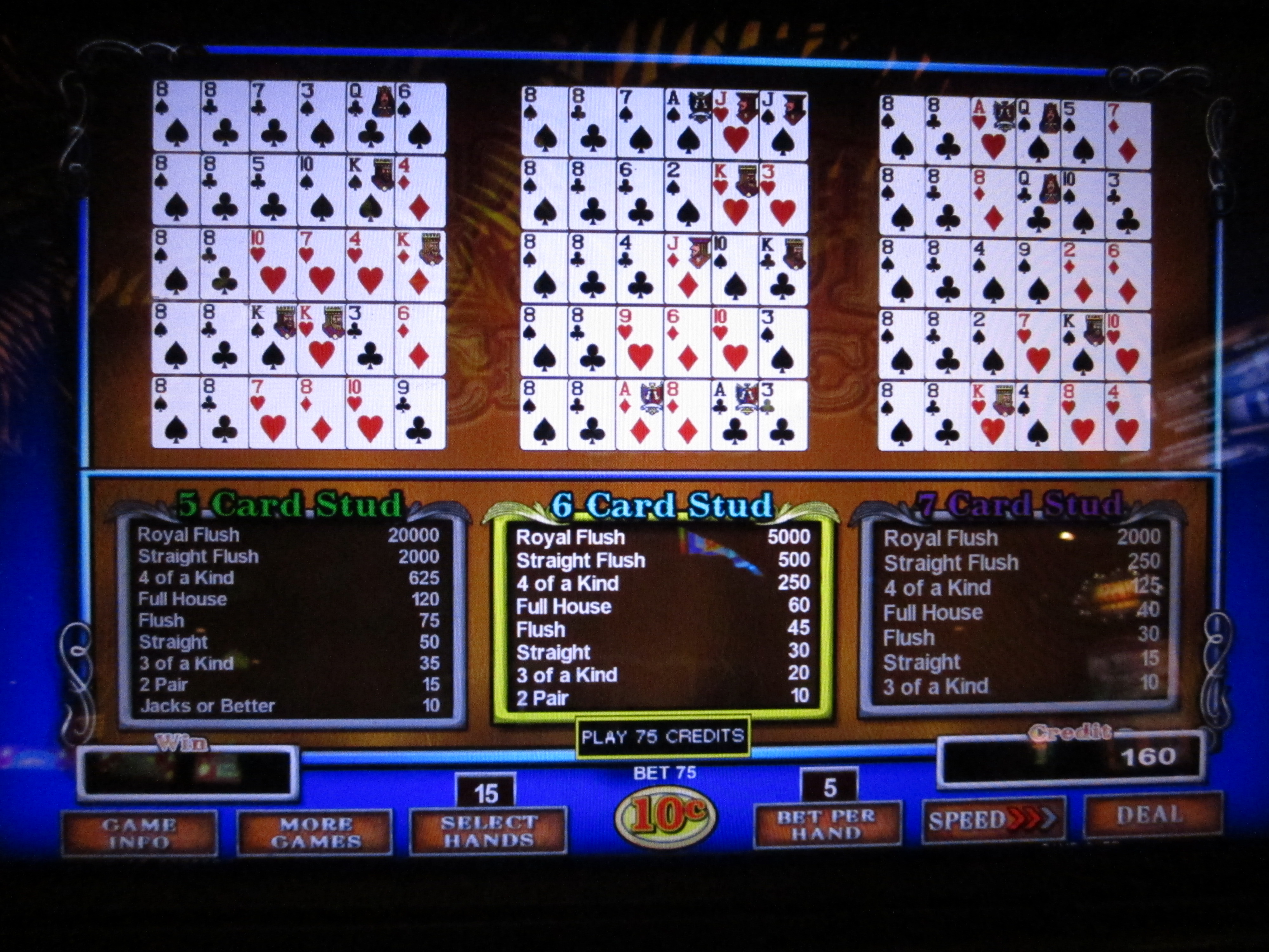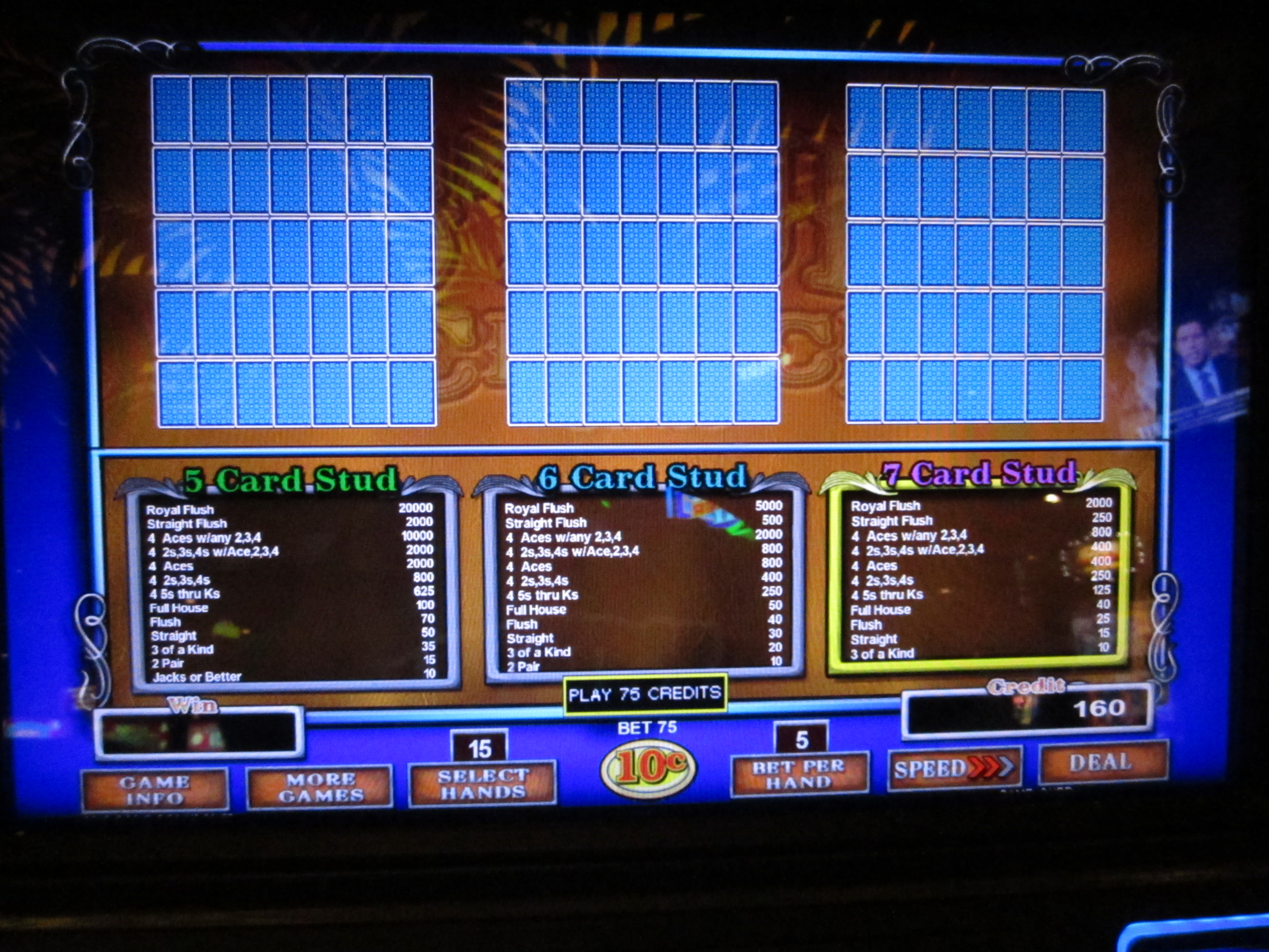 - इसके बाद खिलाड़ी पांच-कार्ड, छह-कार्ड या सात-कार्ड स्टड खेलना चुन सकता है।