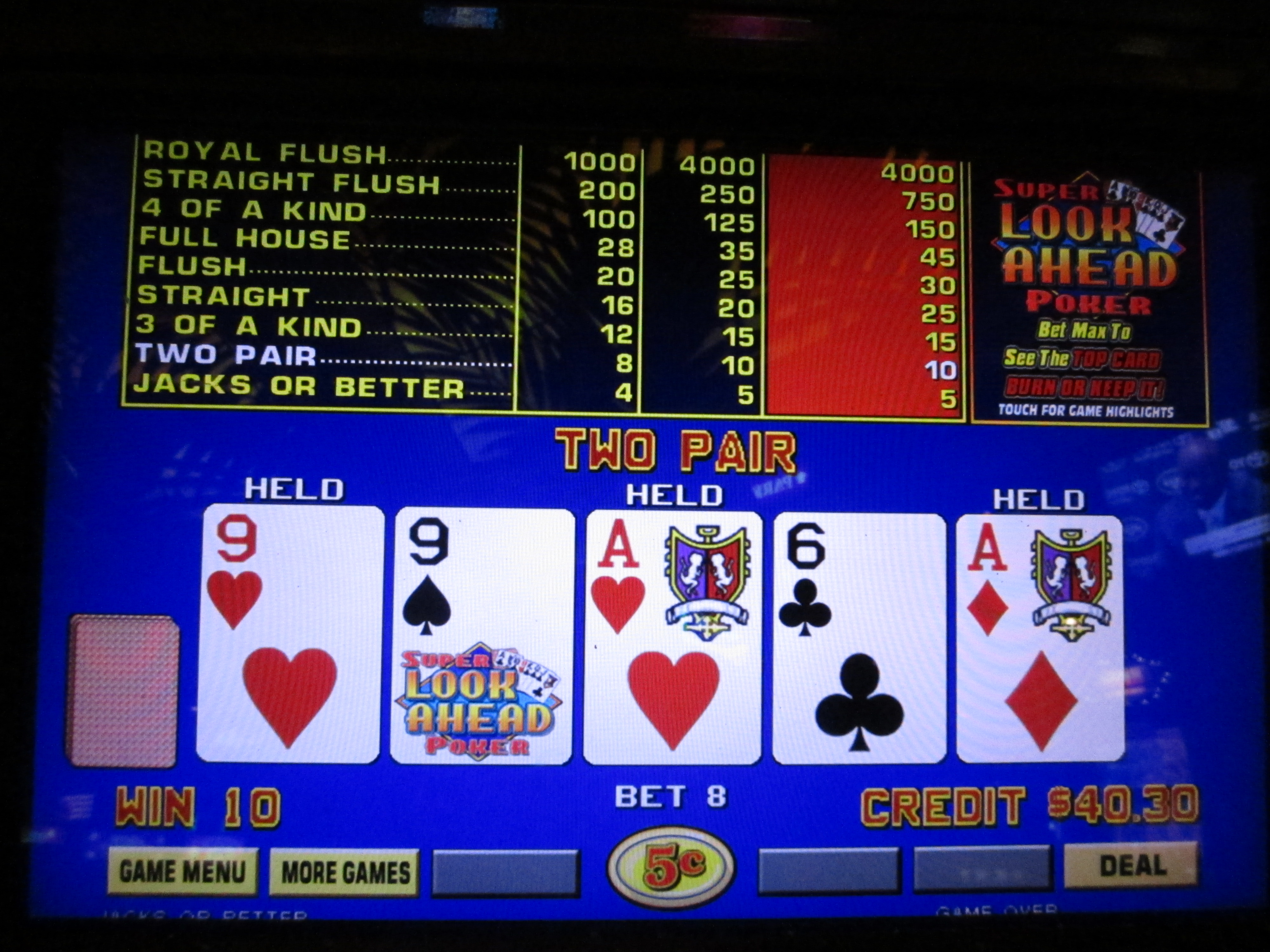 - सुपर लुक अहेड पोकर में खिलाड़ी को लुक अहेड फीचर के लिए तीन अतिरिक्त सिक्के देने होते हैं, जबकि लुक अहेड पोकर में दो सिक्के देने होते हैं।